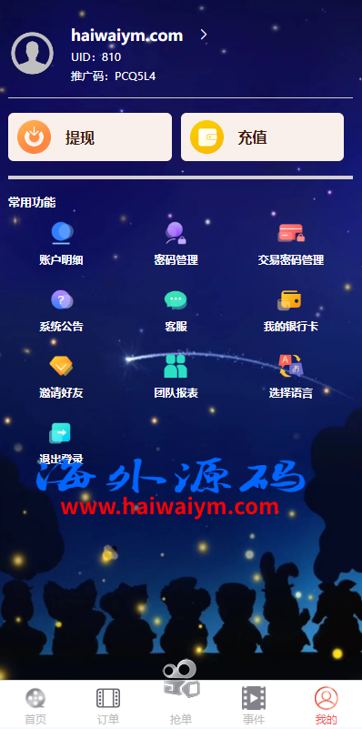 海外多语言电影抢单刷单系统/卡单/业务员/代理/前端uinapp