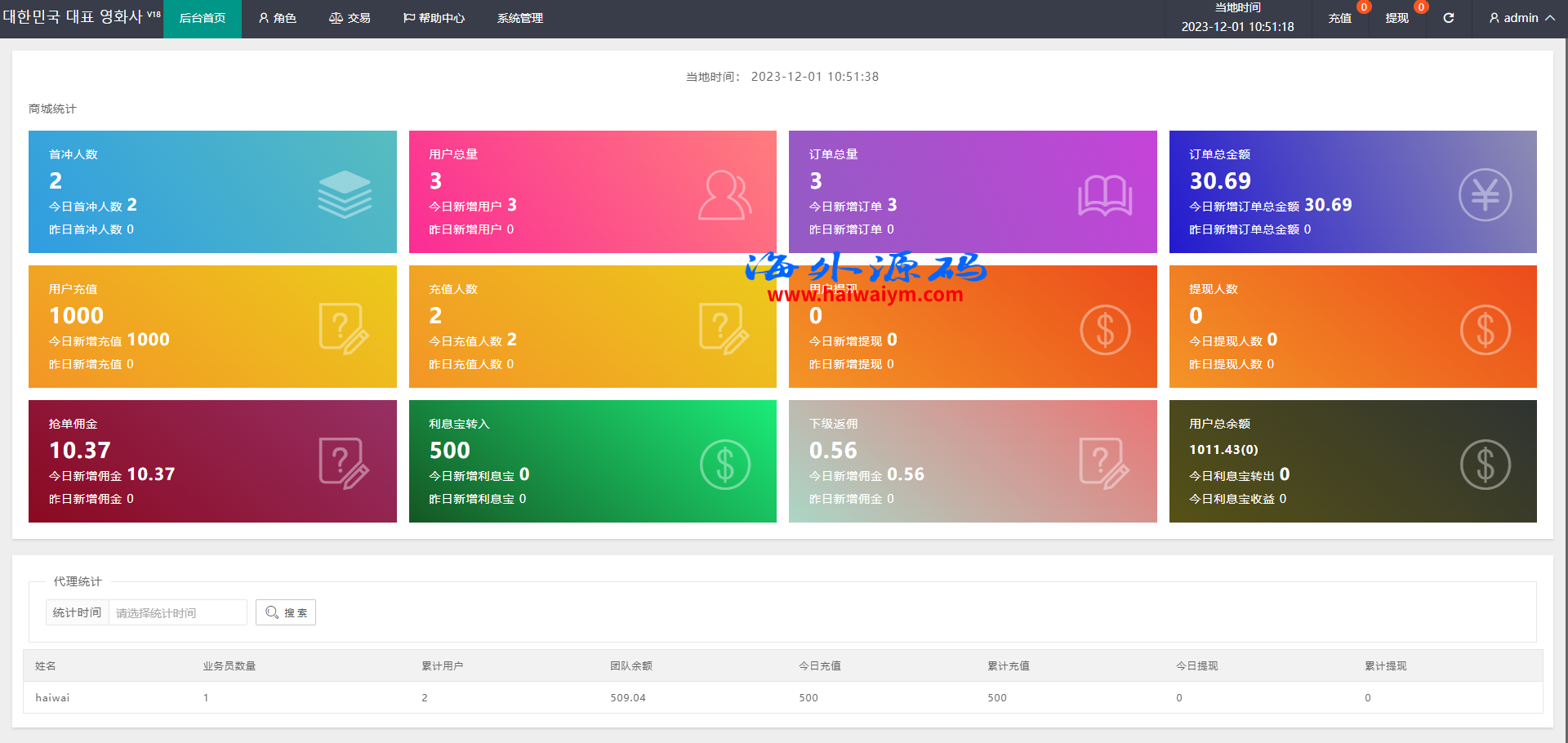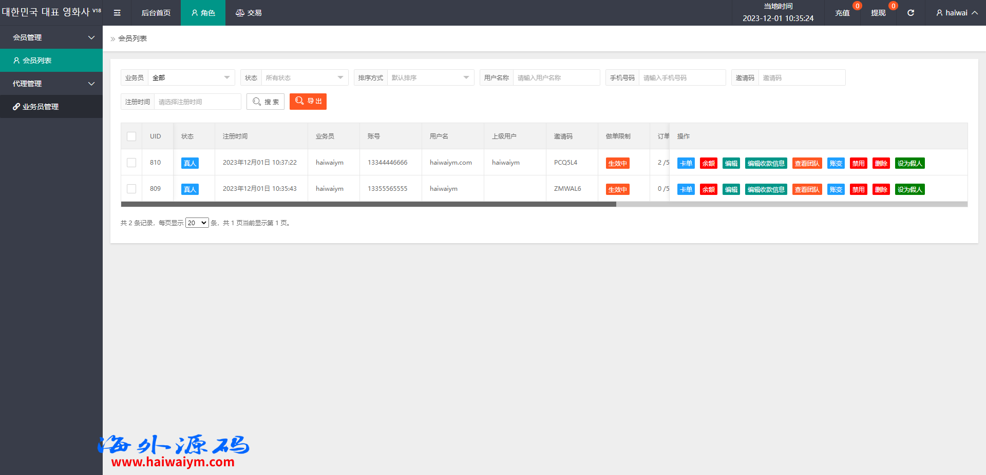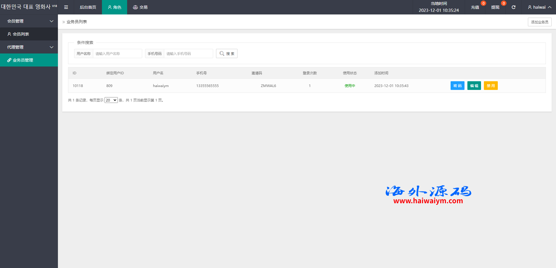 2、增加代理、业务员后台、分别有独自的域名绑定