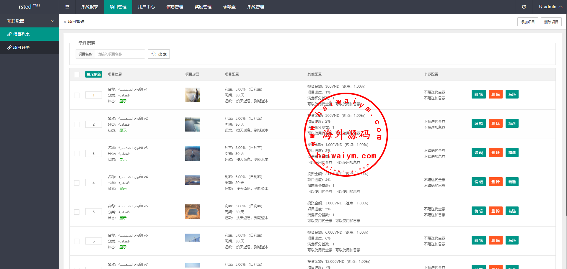系统功能完善,前端多语言,系统产品后台可修改不限项目类型
