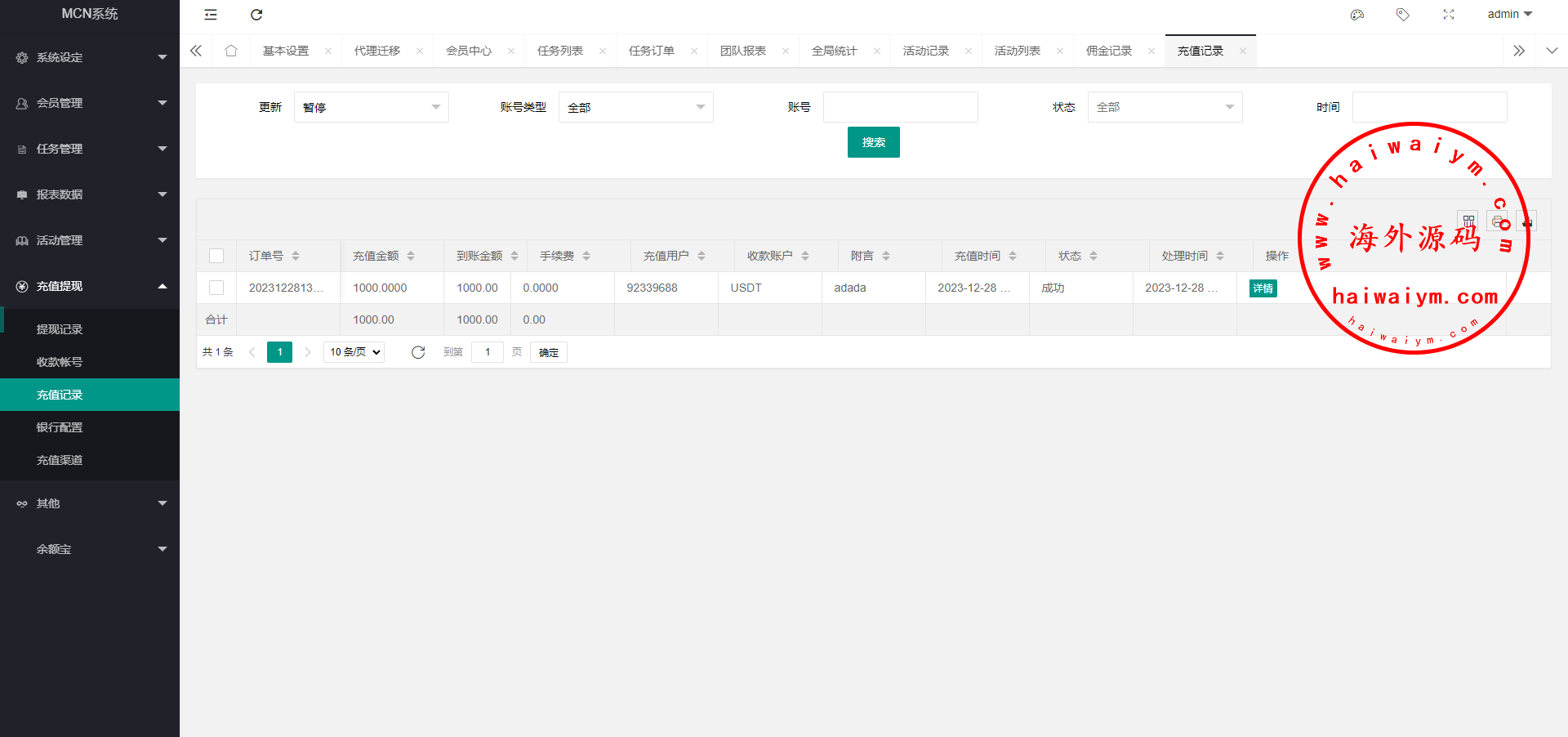 ③、后台审核任务完成情况,给会员确认佣金