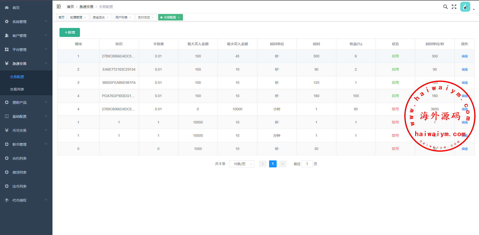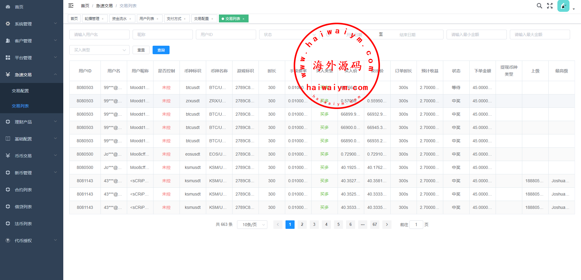 海外交易所系统/合约/期权/质押/秒合约/插针控制/申购