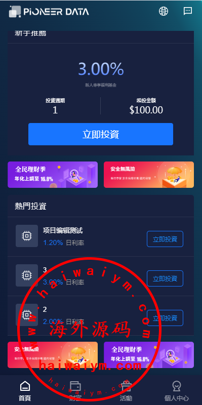新版海外投资理财系统/多语言投资返利/IM社区/10级分销