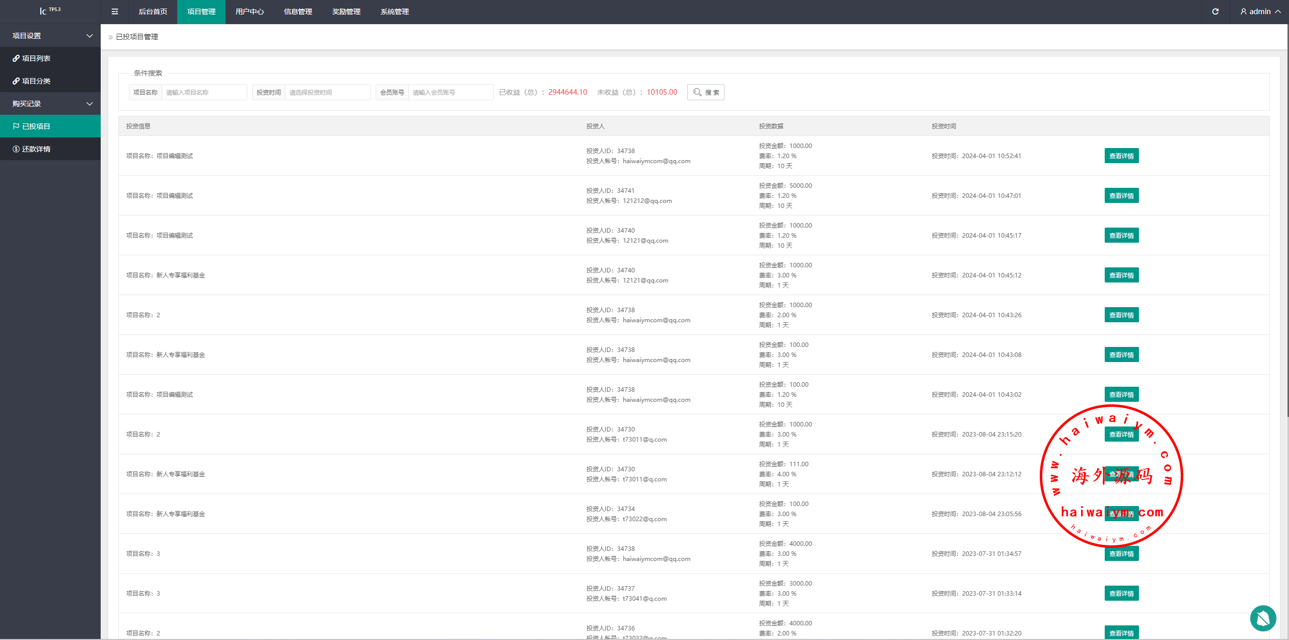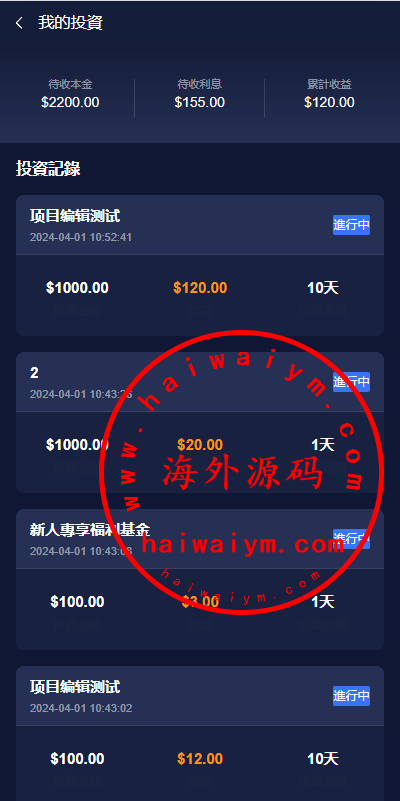 新版海外投资理财系统/理财投资分红系统/红包赠送