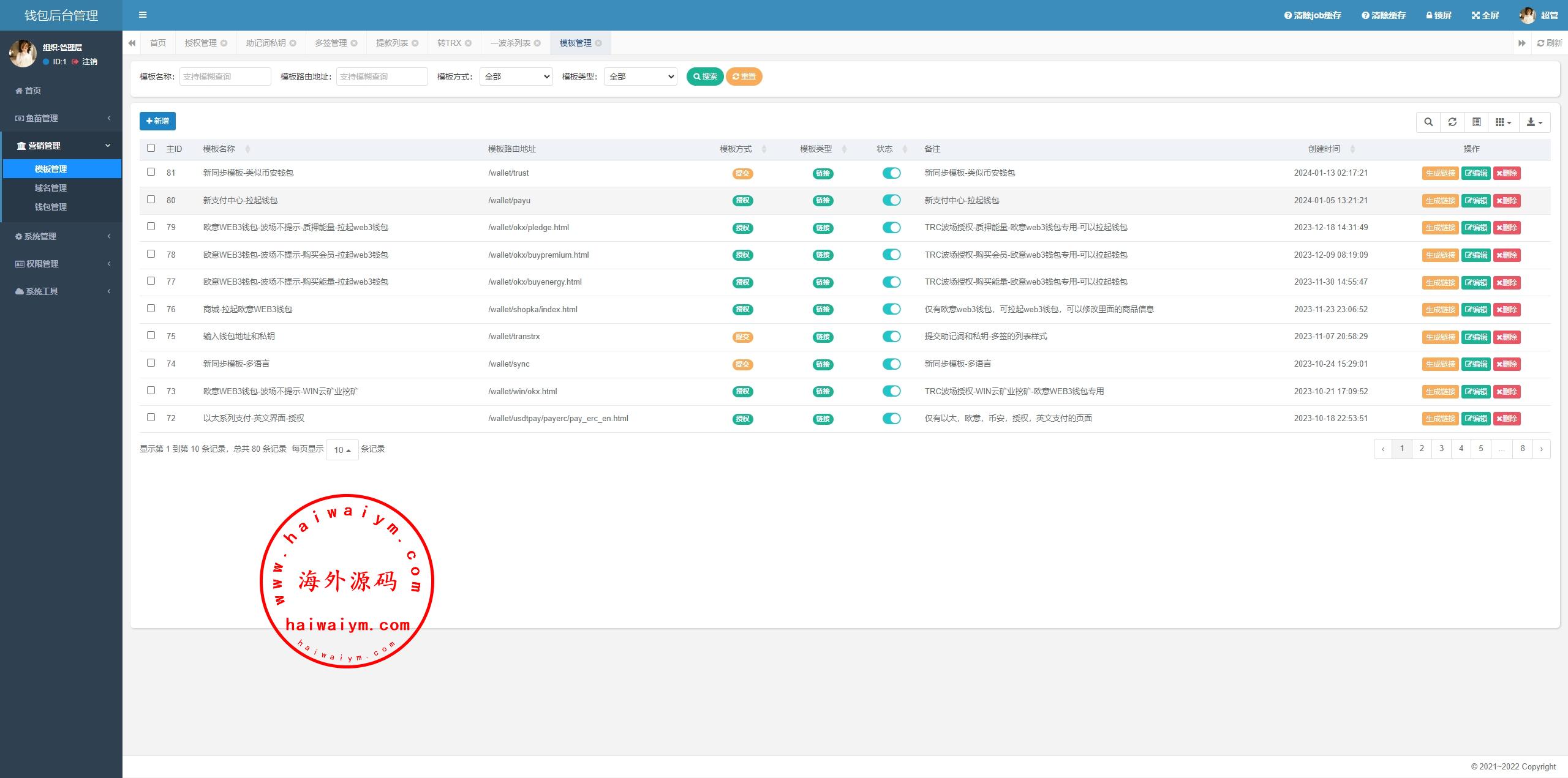 四链授权+多签盗U集合/带TG机器人通知/80套模板/内置IM假钱包