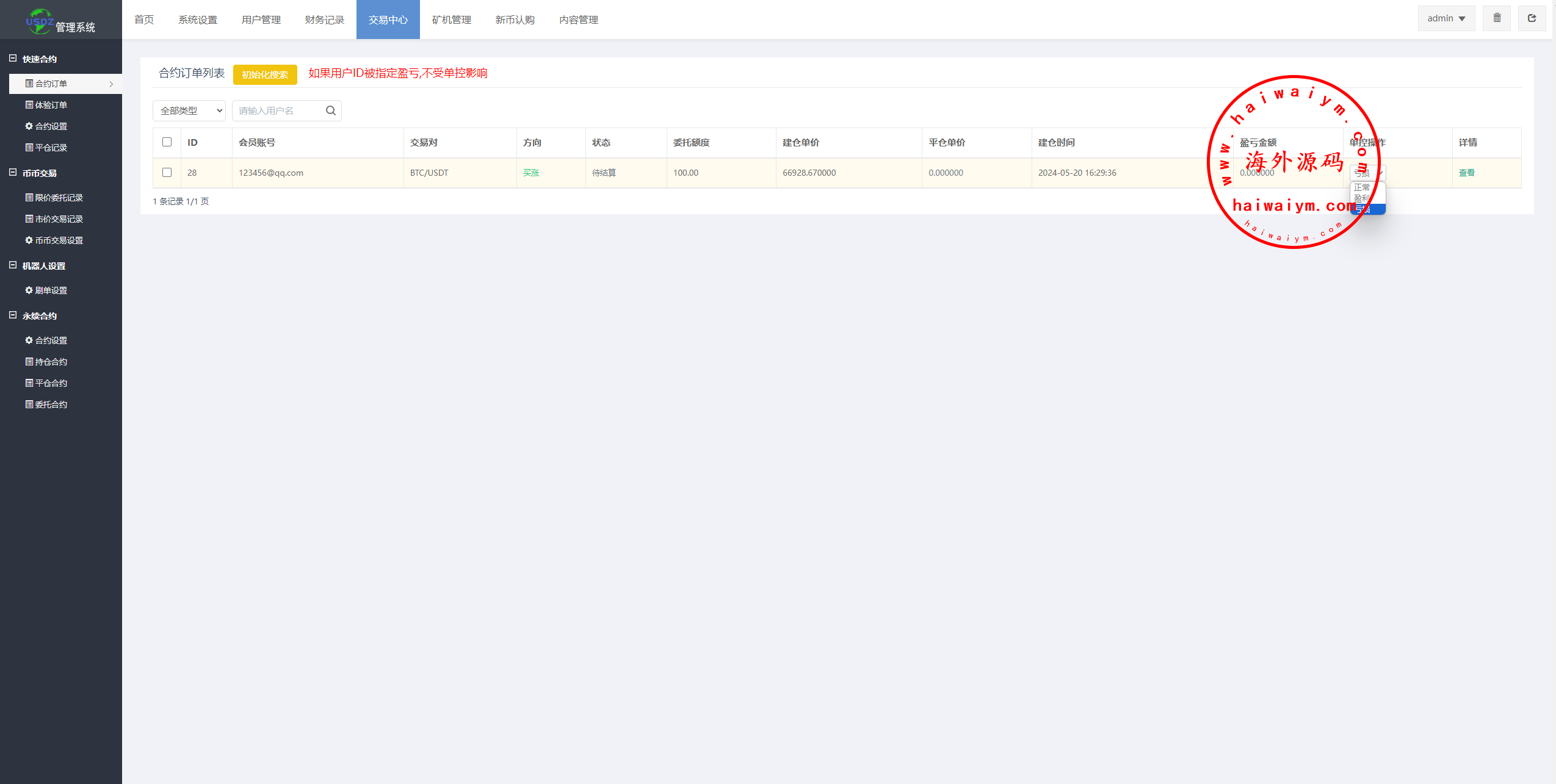 海外交易所系统/合约/期权/质押/秒合约/插针控制/申购