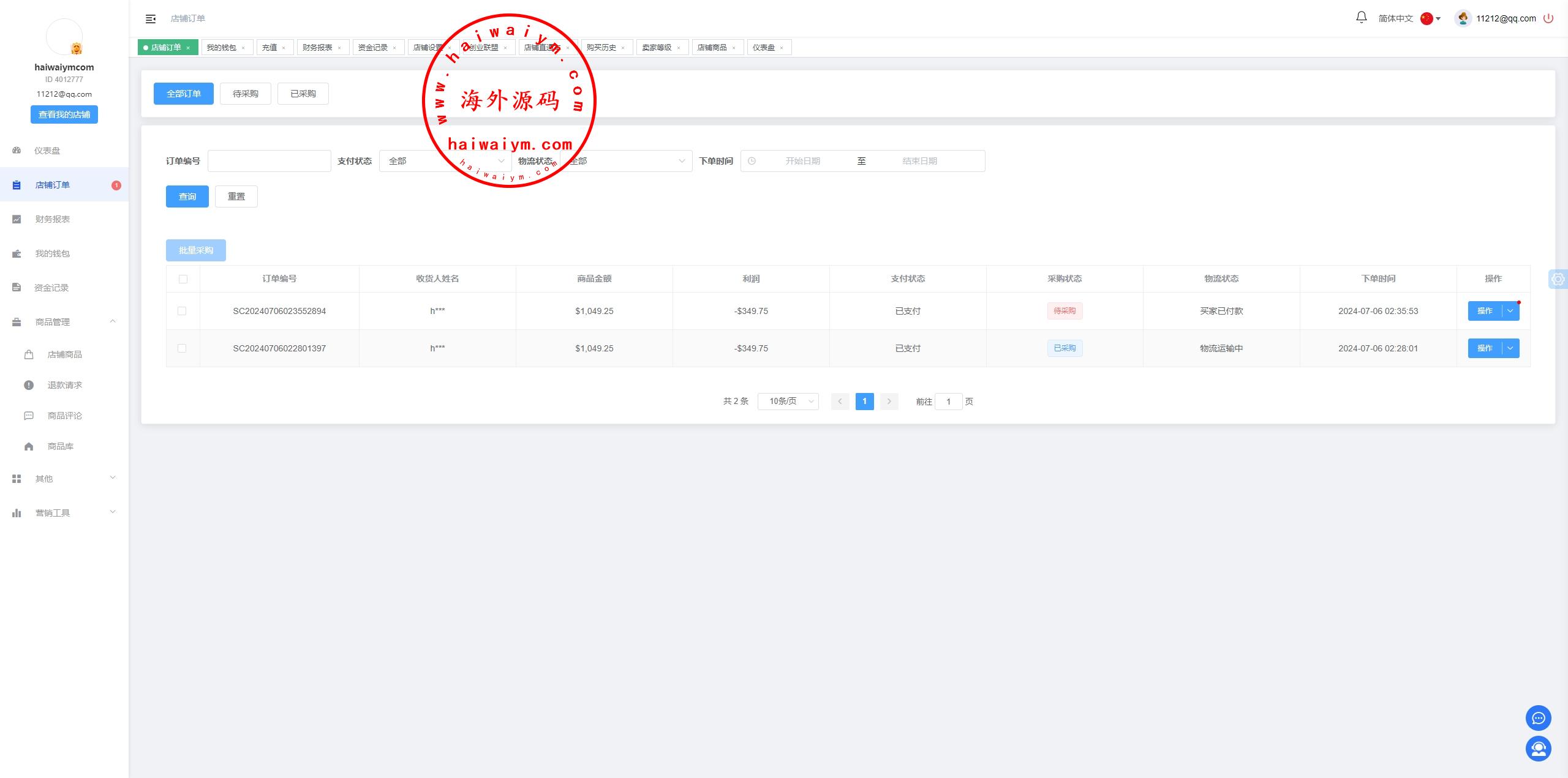 新版跨境电商系统/多语言商城/商家入驻/一键铺货后台下单