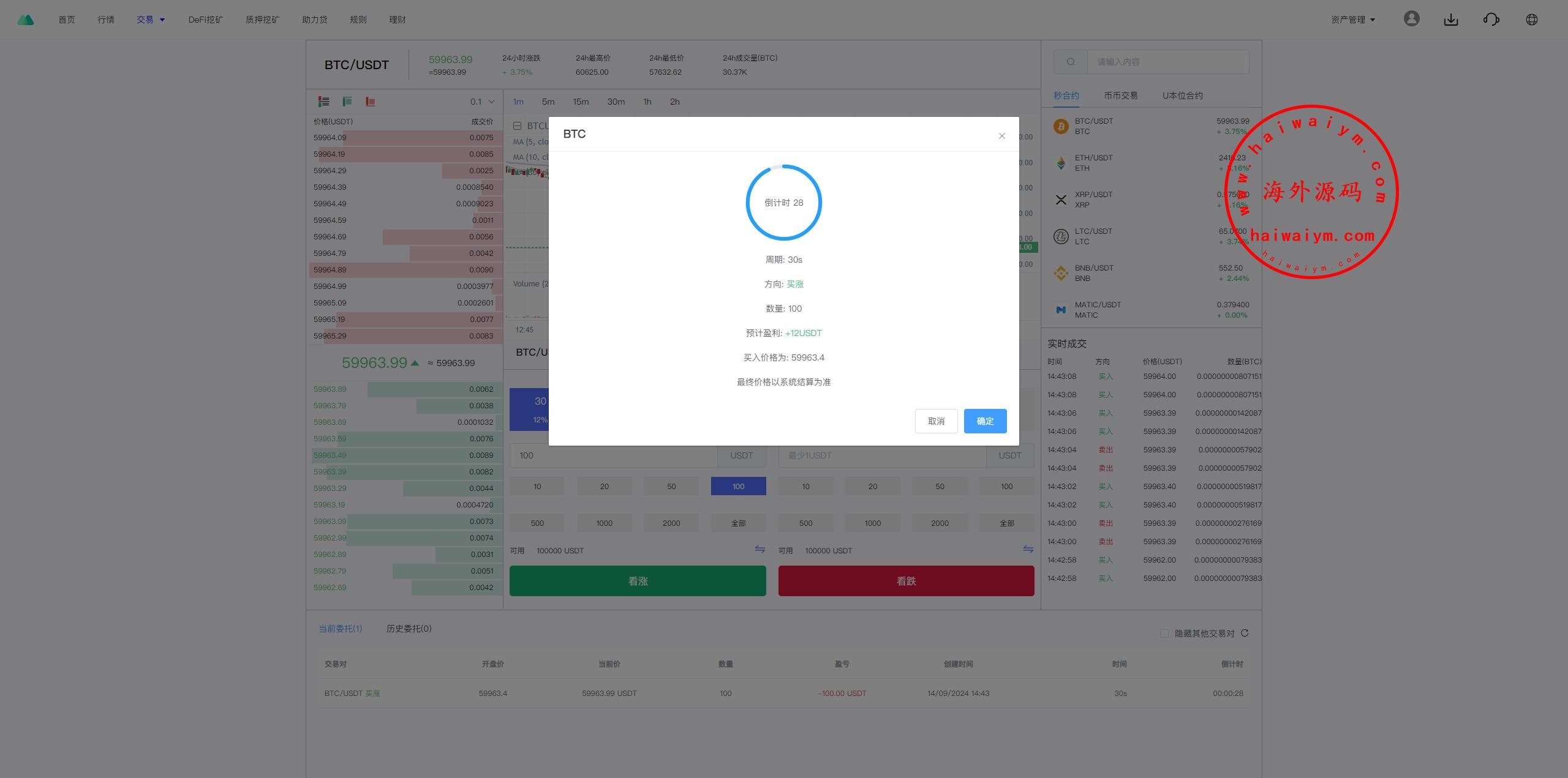 多语言虚拟币交易系统/秒合约交易/伪交易所/时间盘