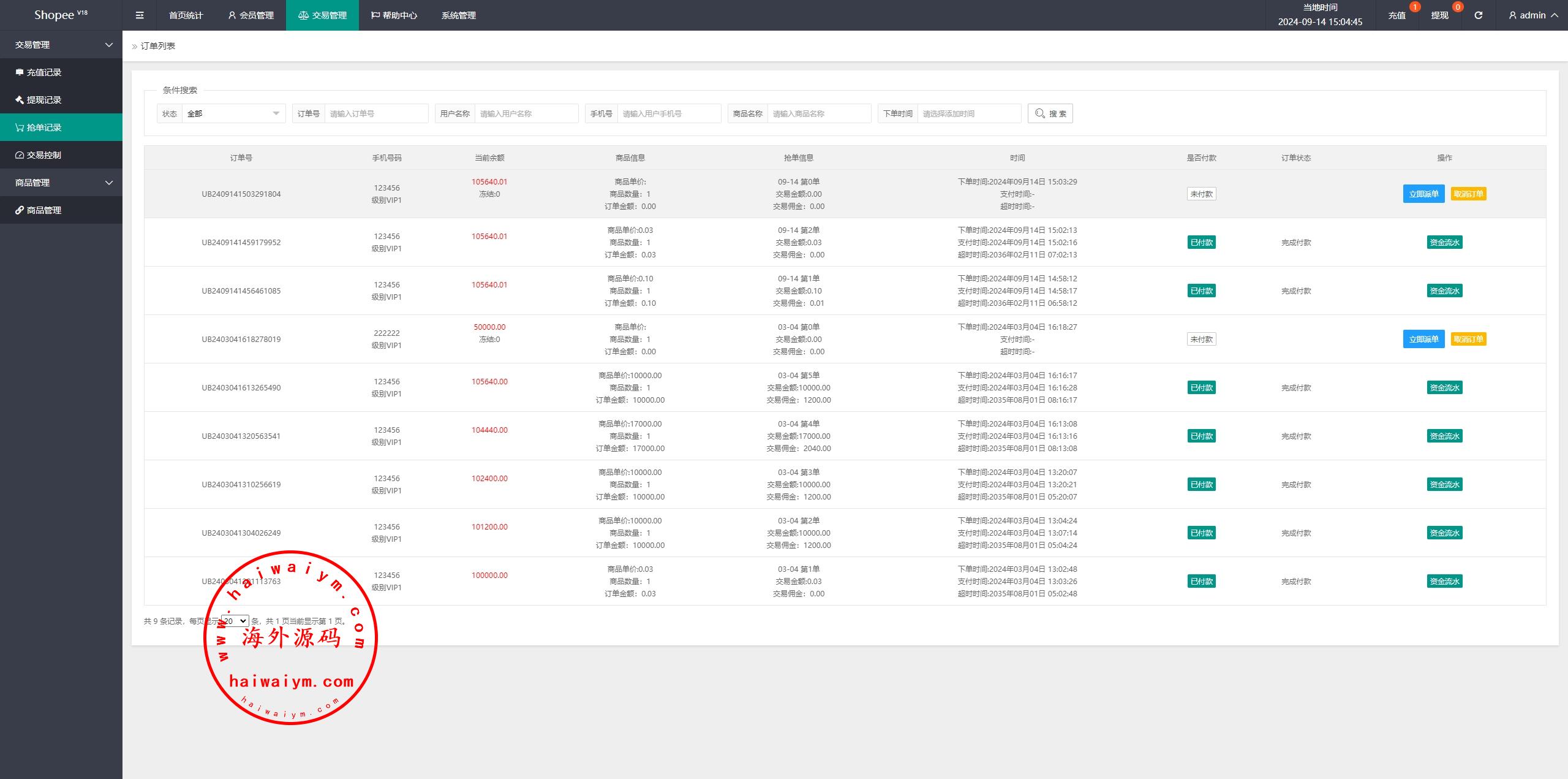 海外商城抢单刷单系统/预设订单/重置订单/签到