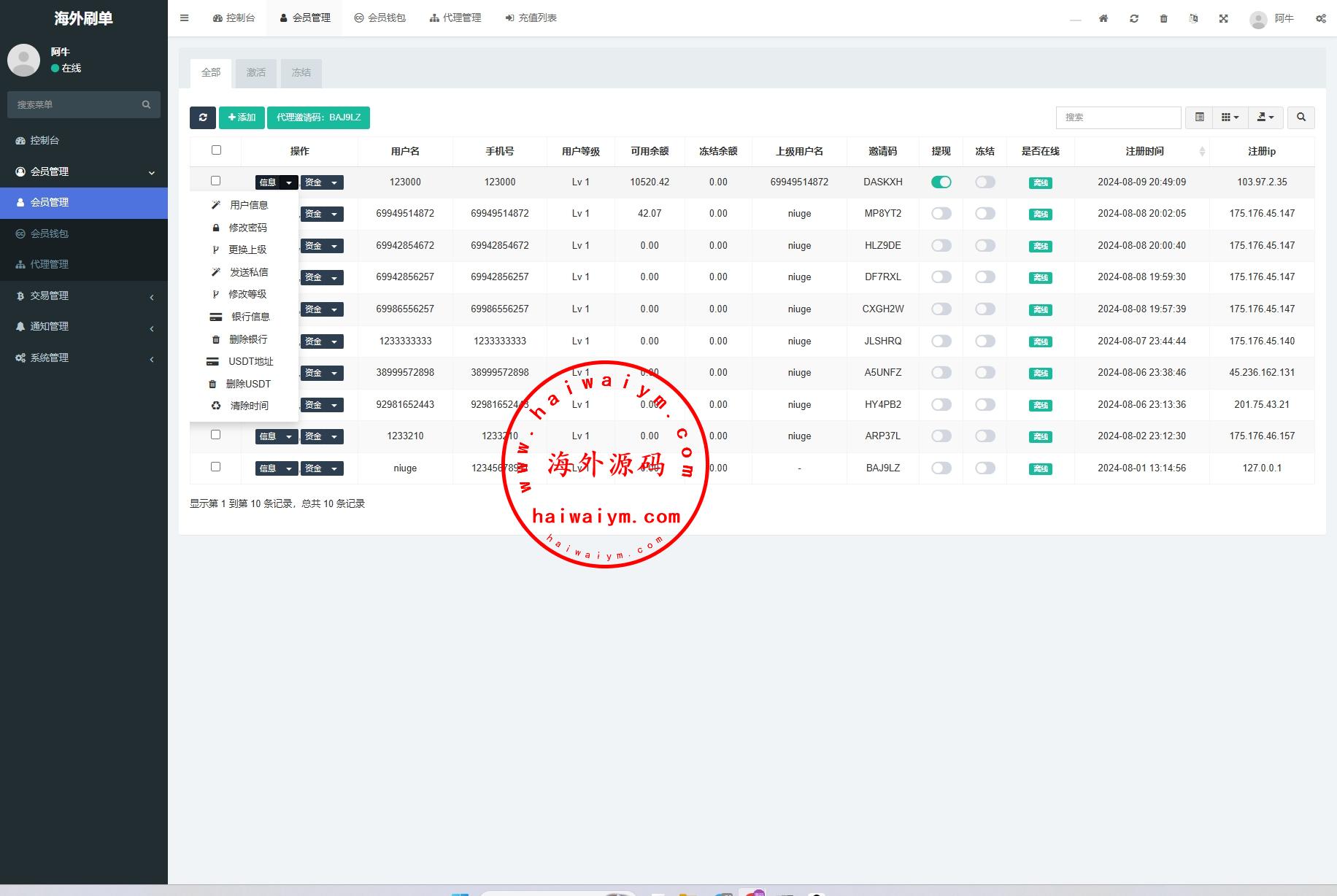 韩国抢单刷单系统/多语言刷单商城/打针/信用分/代理后台