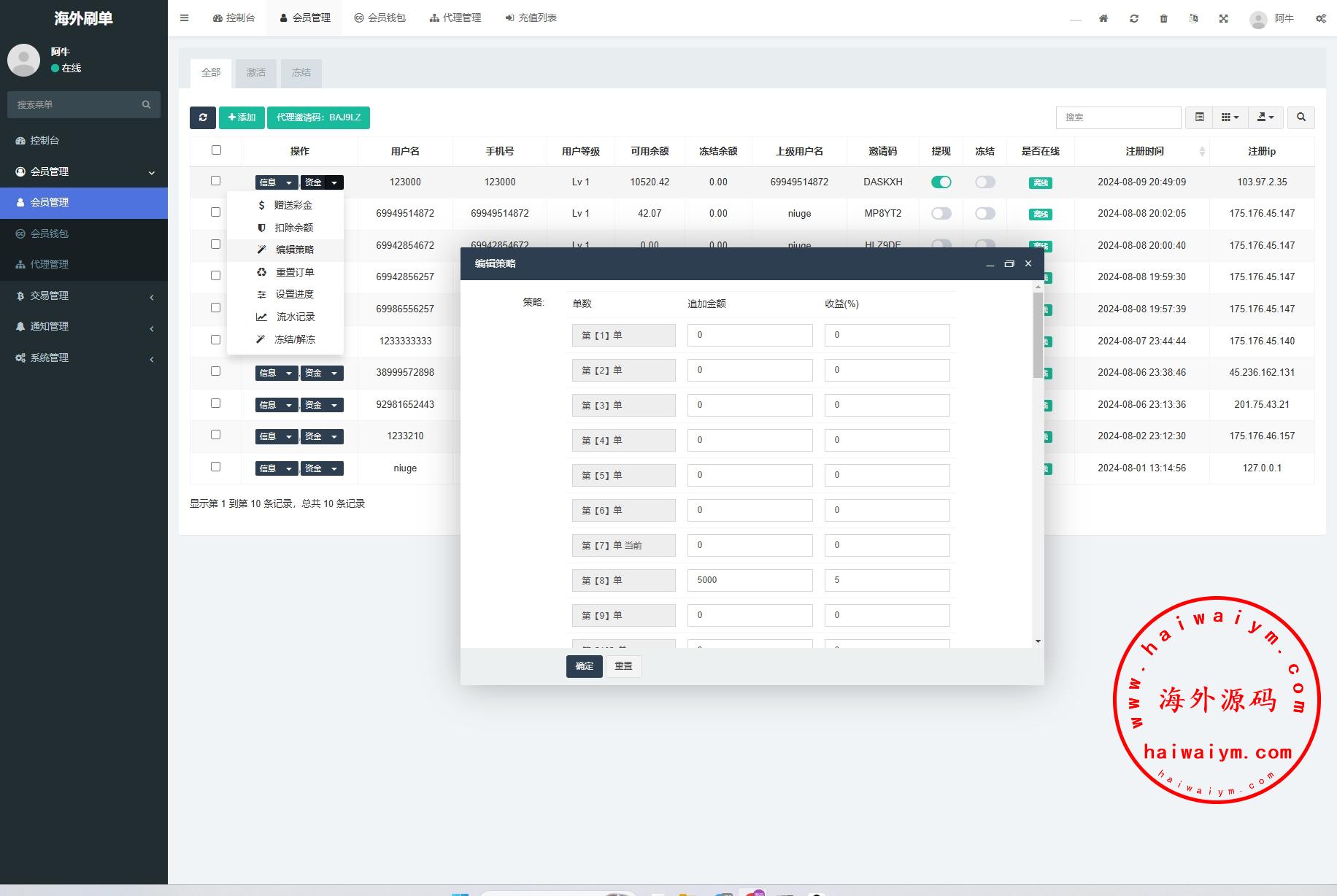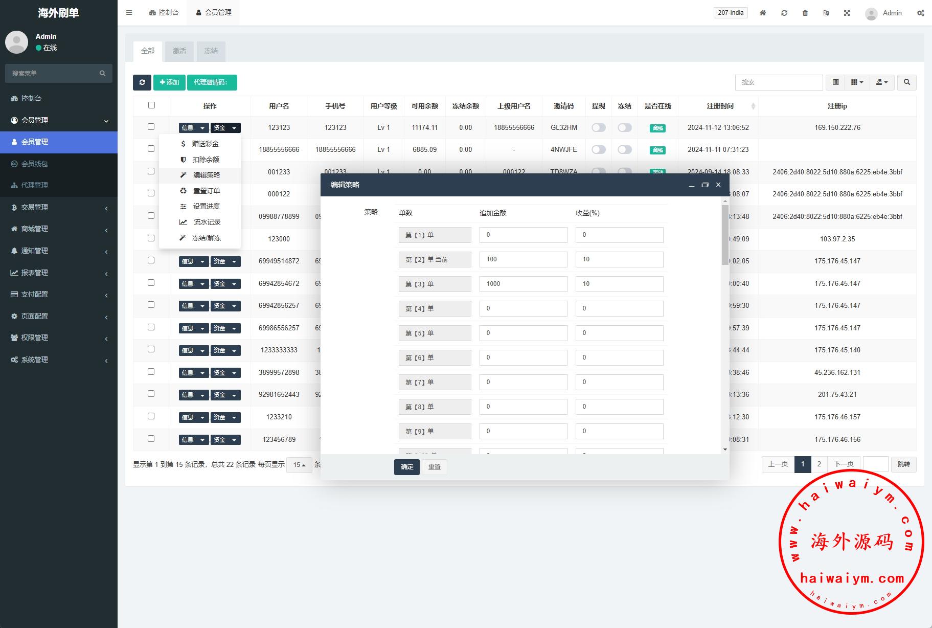 海外商城抢单刷单系统/预设订单/重置订单/签到