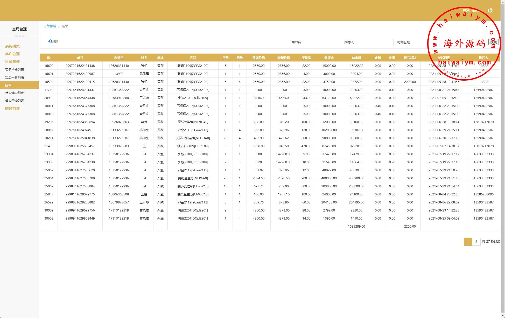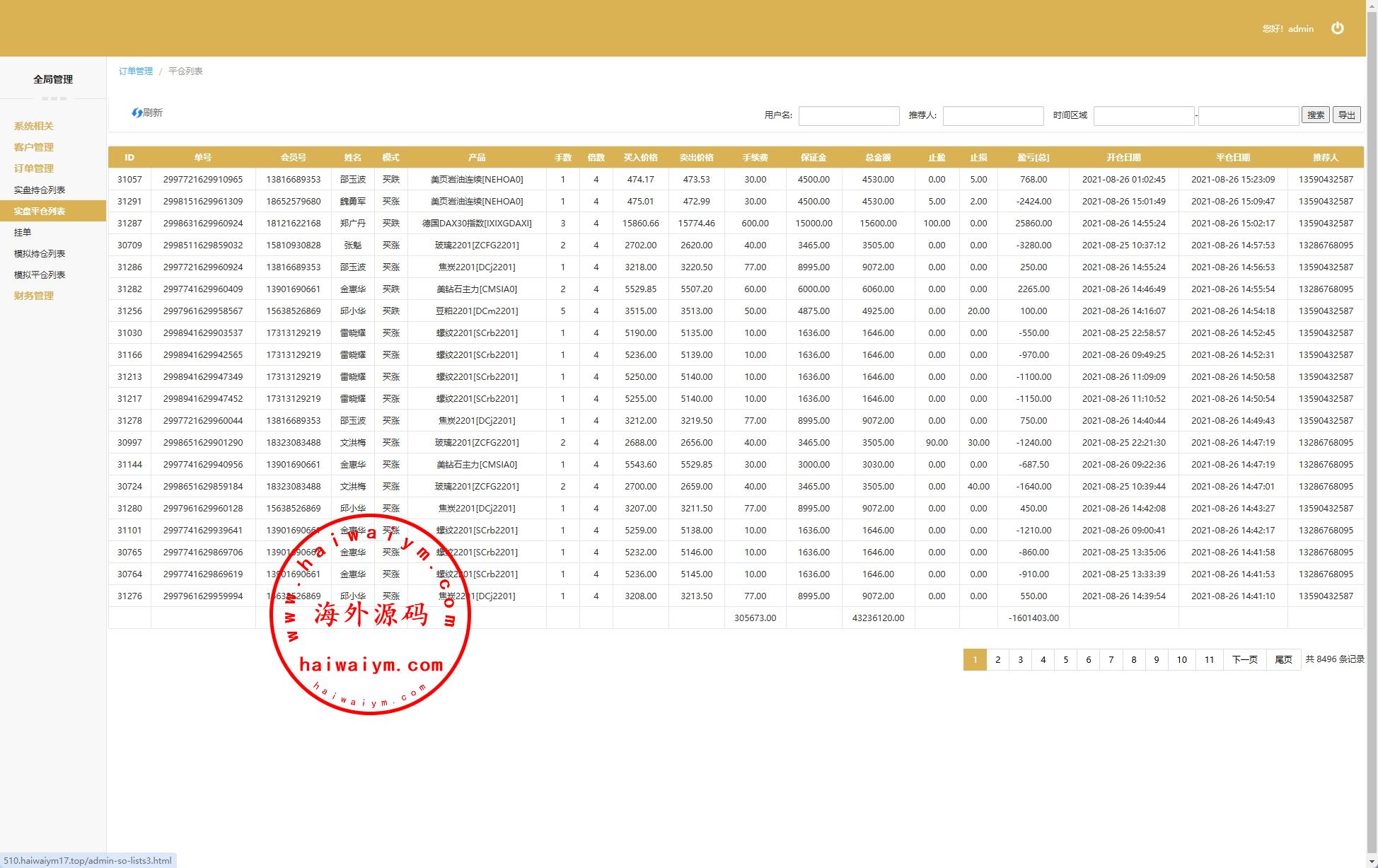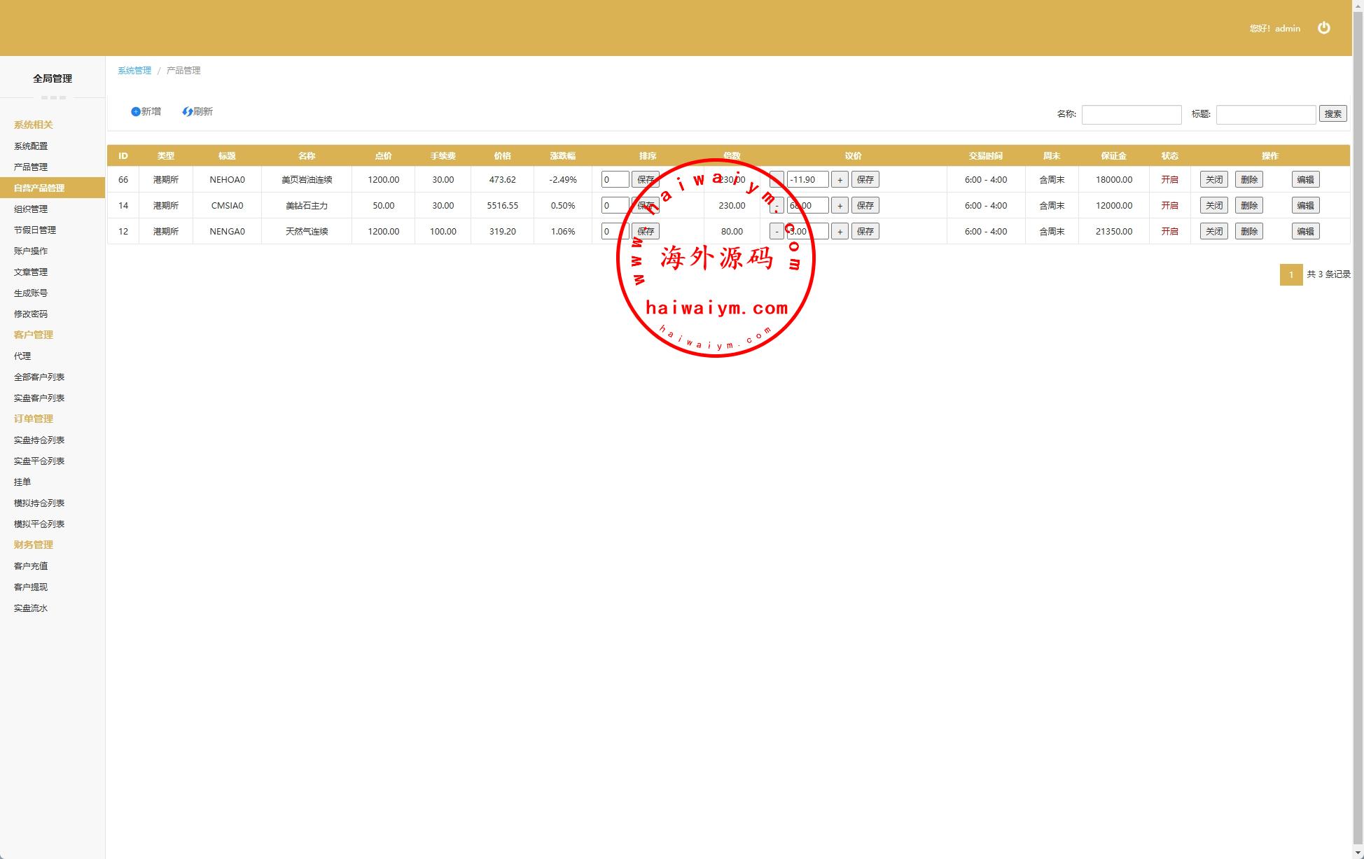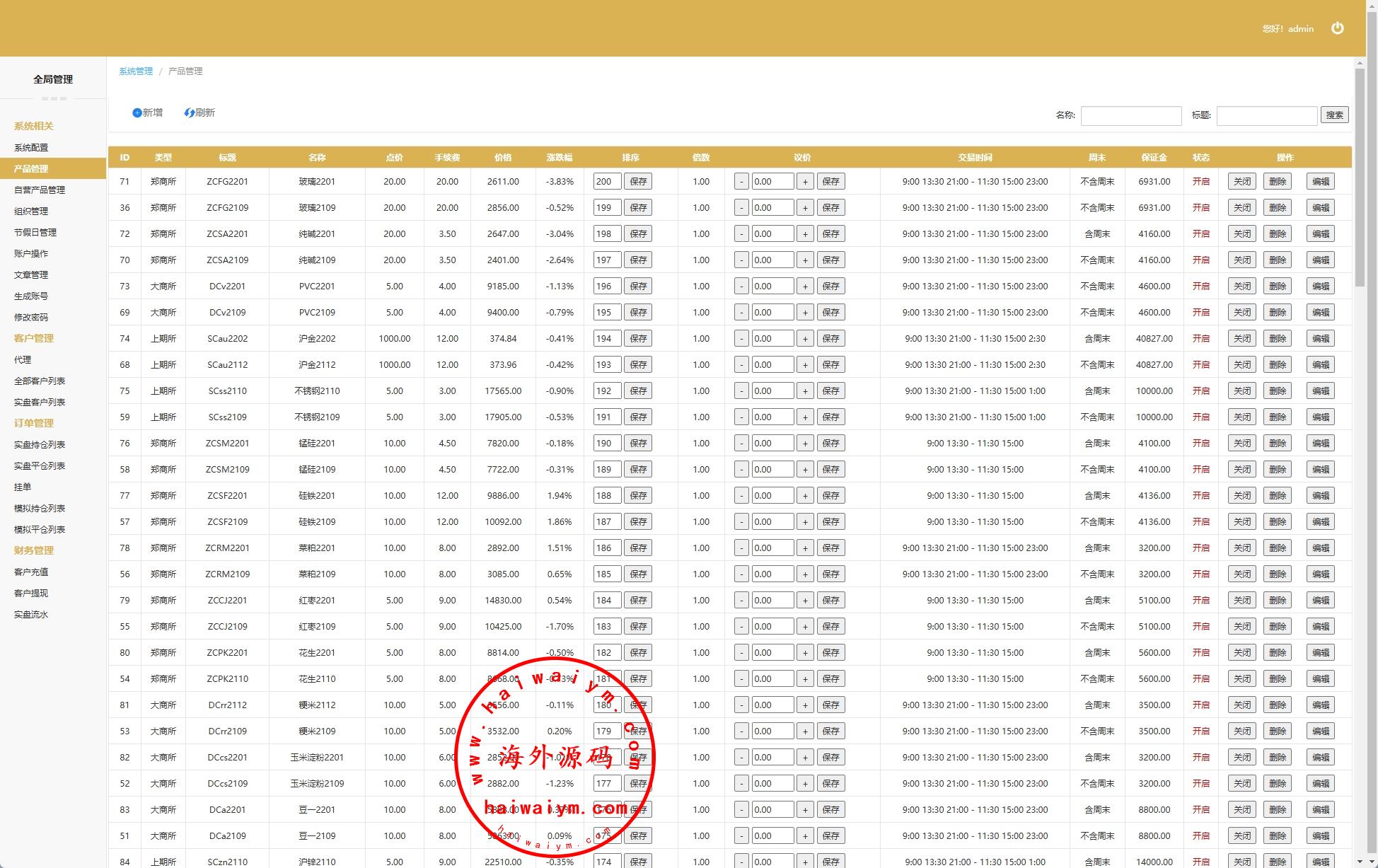 海外交易所系统/合约/期权/质押/秒合约/插针控制/申购