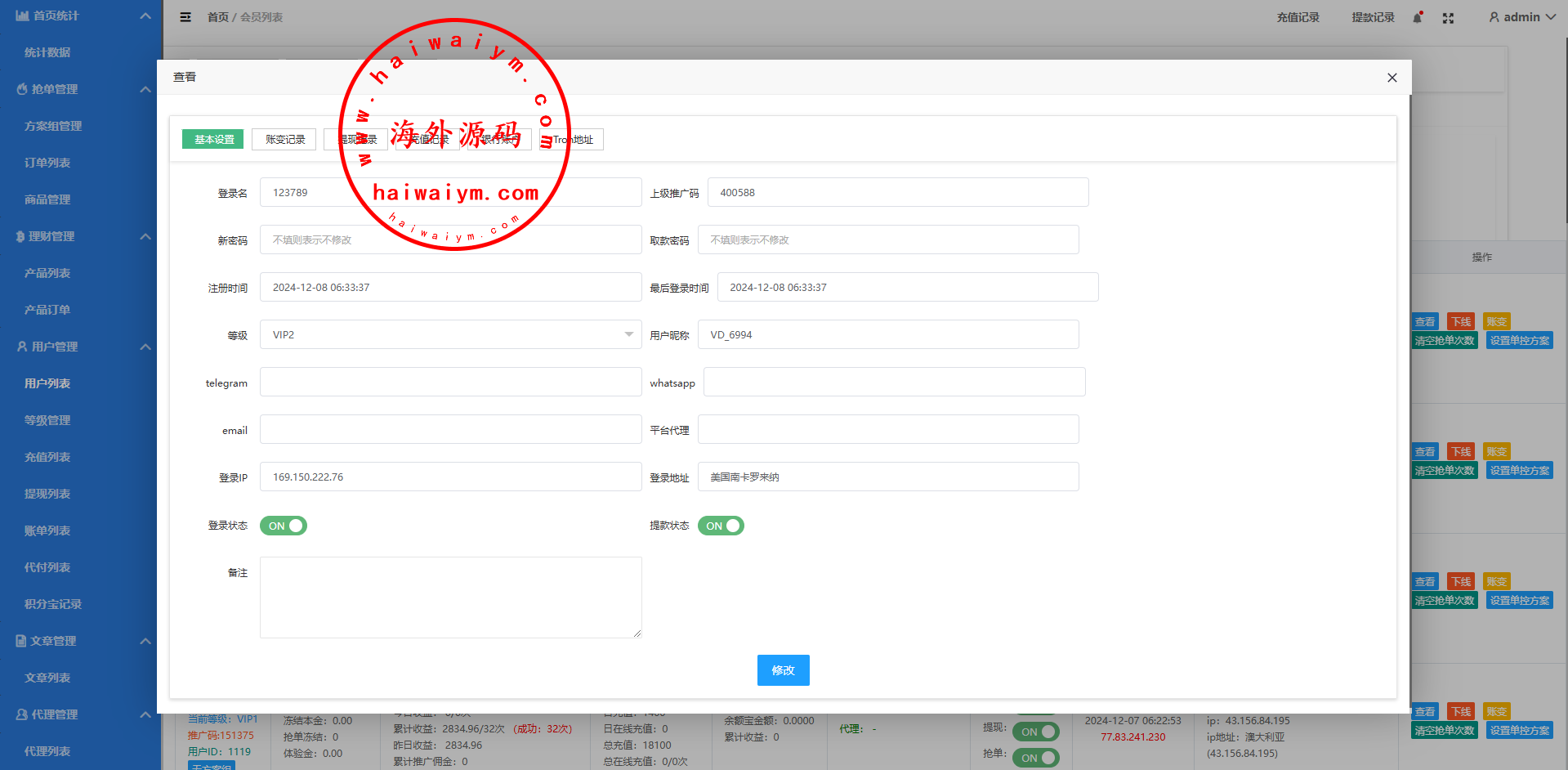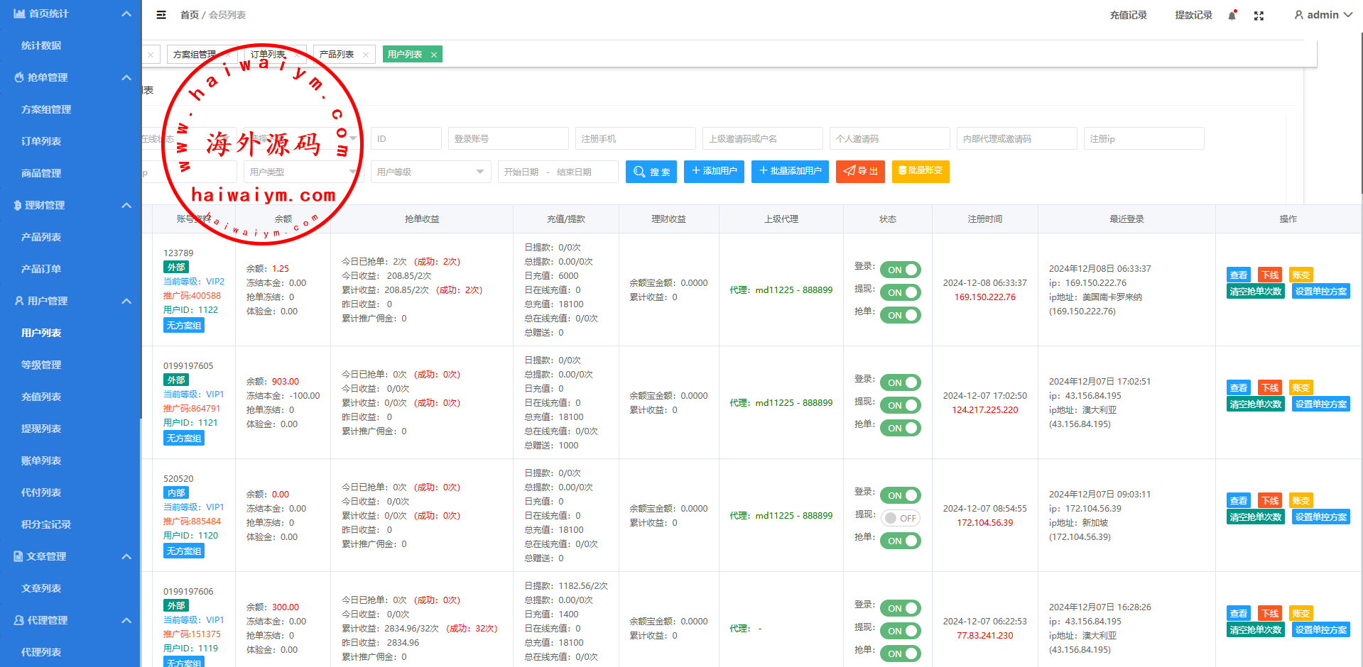 韩国抢单刷单系统/多语言刷单商城/打针/信用分/代理后台