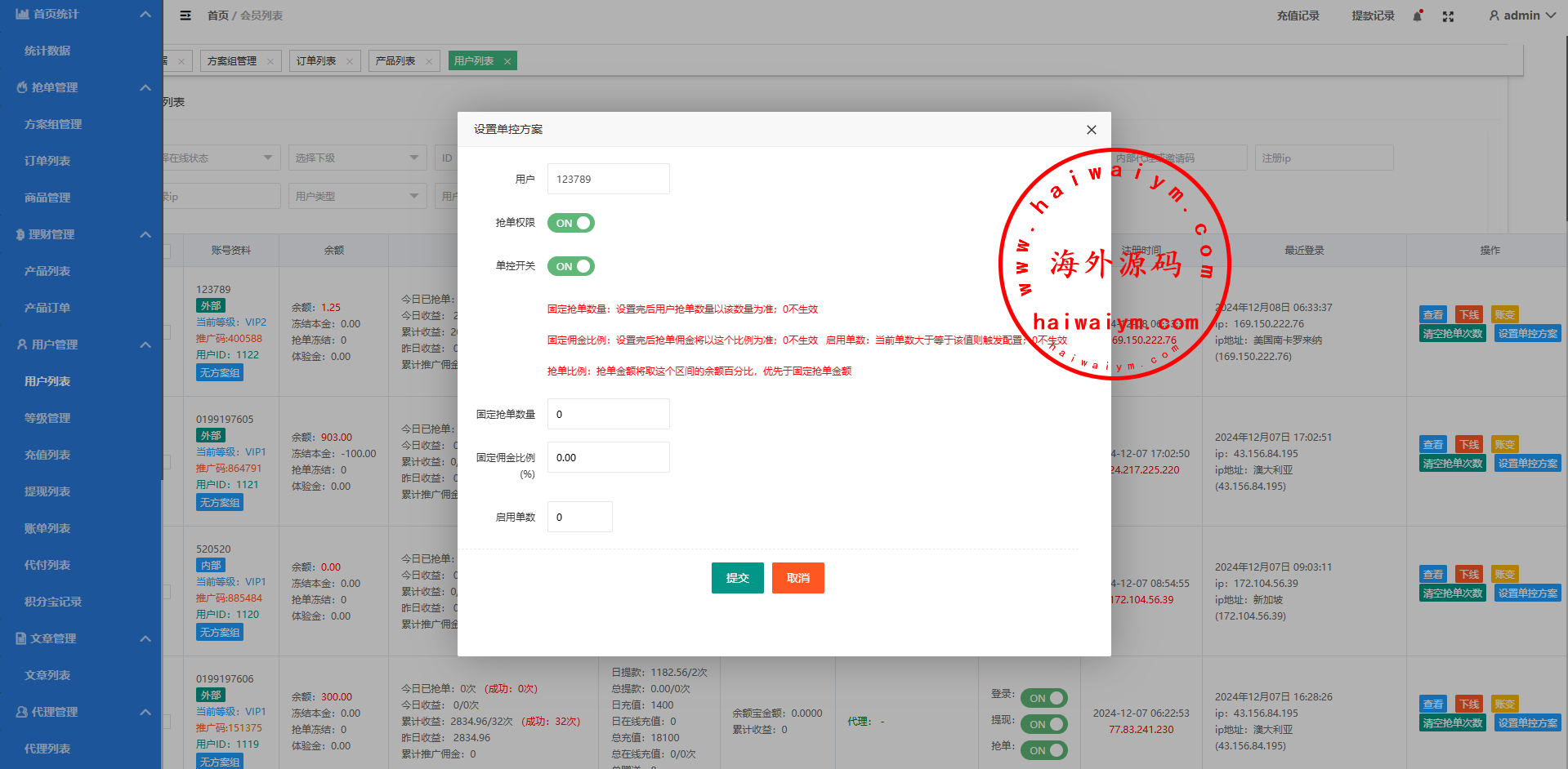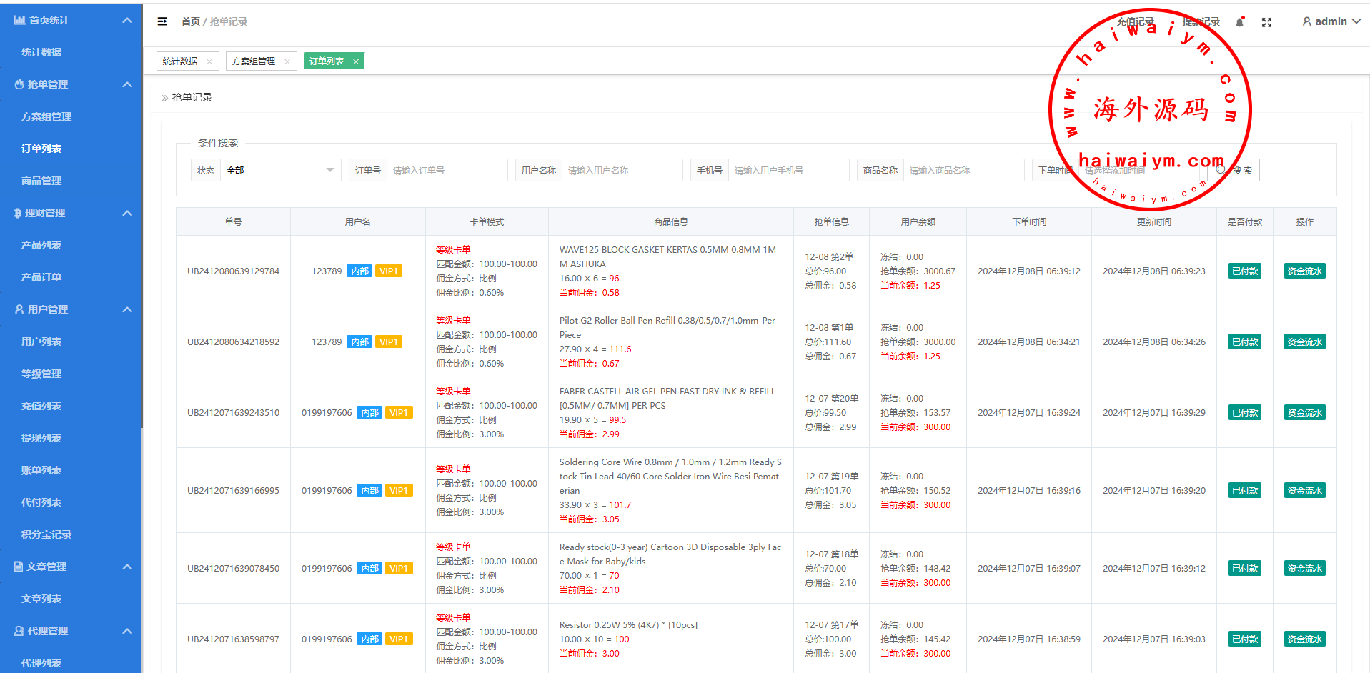 海外商城抢单刷单系统/预设订单/重置订单/签到