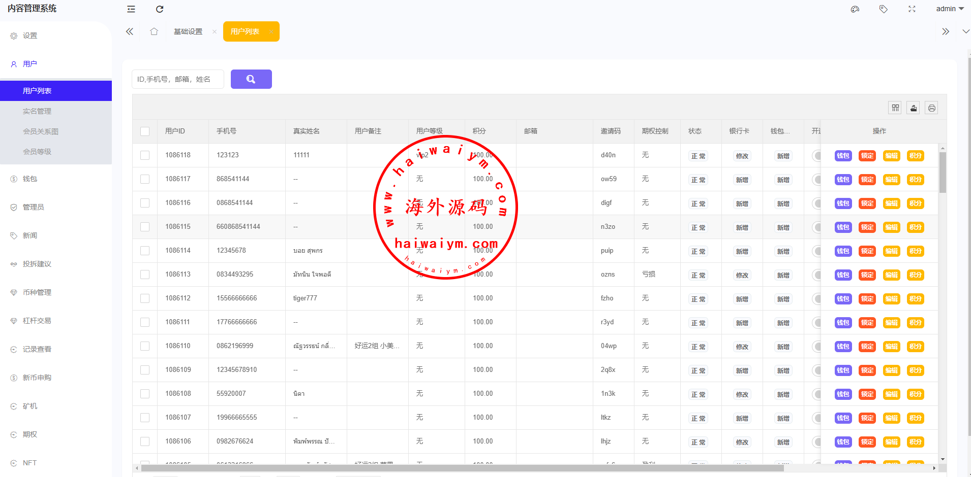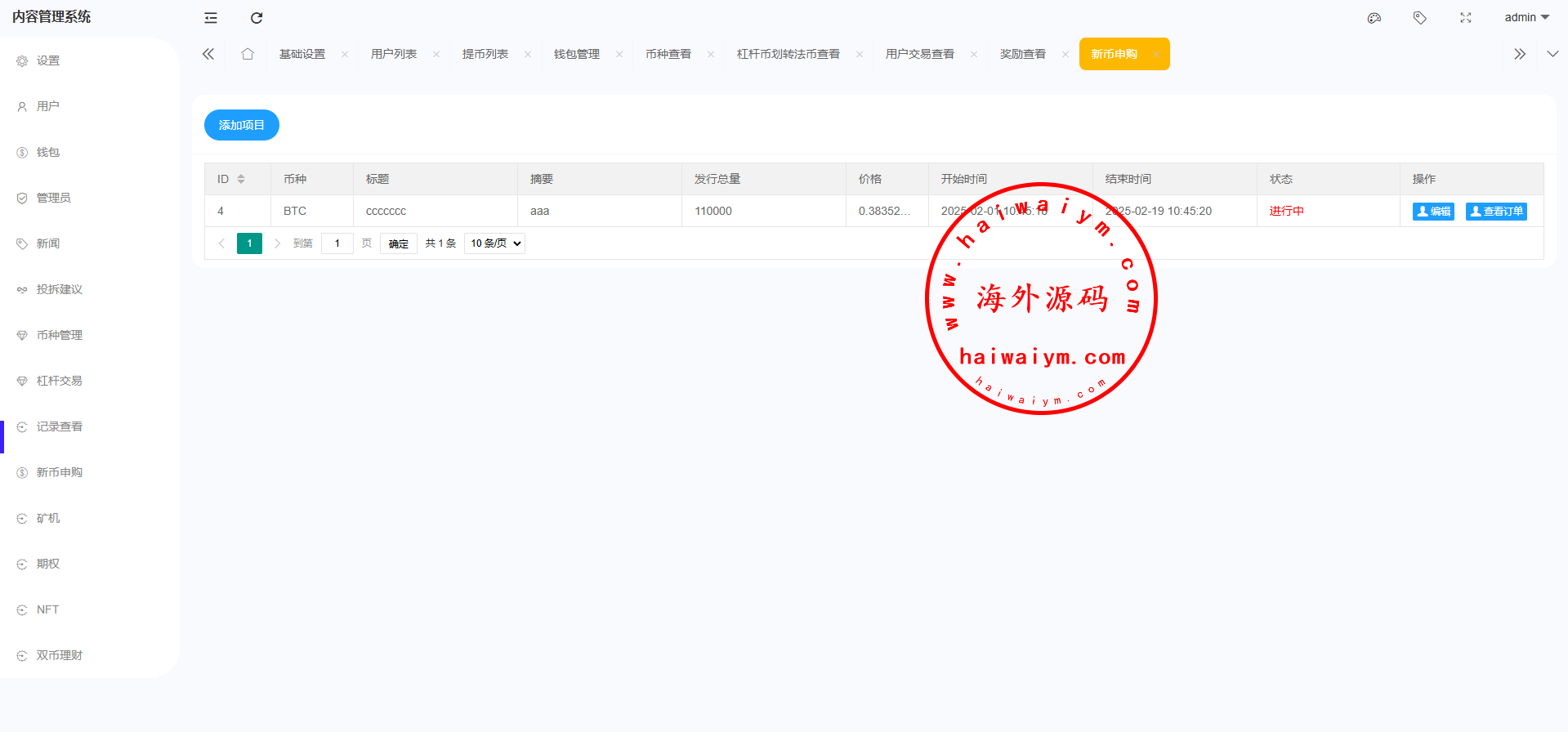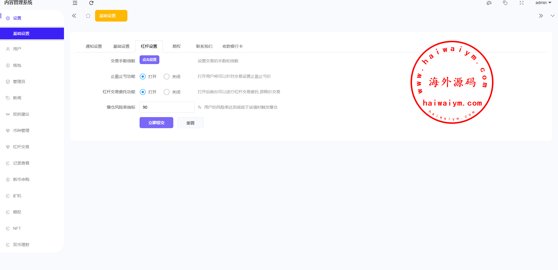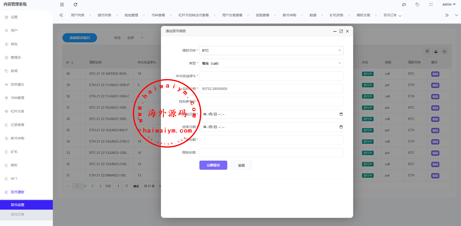 海外交易所系统/合约/期权/质押/秒合约/插针控制/申购