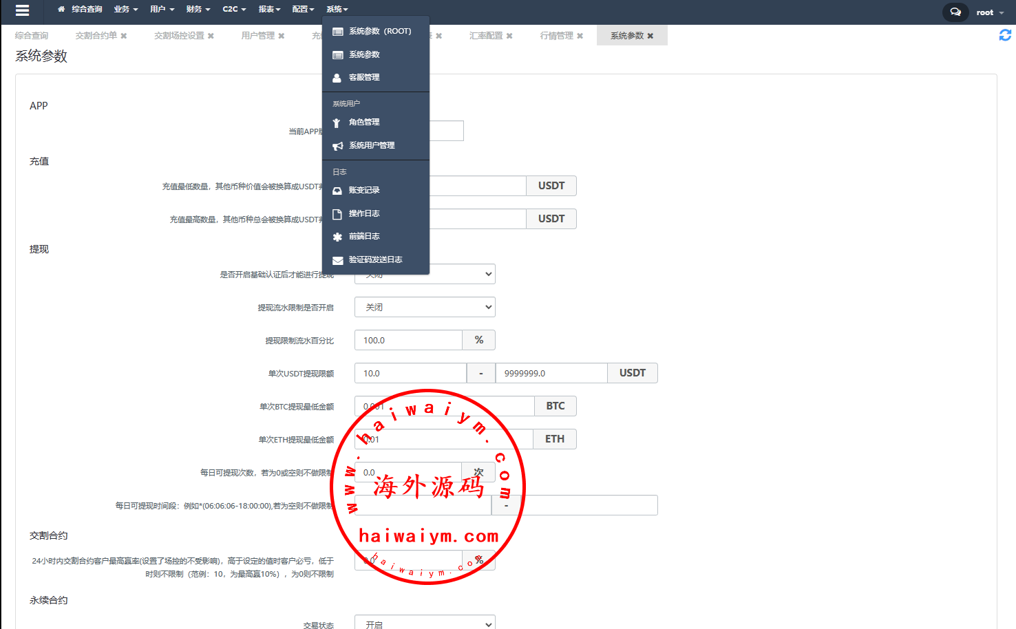 海外交易所系统/合约/期权/质押/秒合约/插针控制/申购