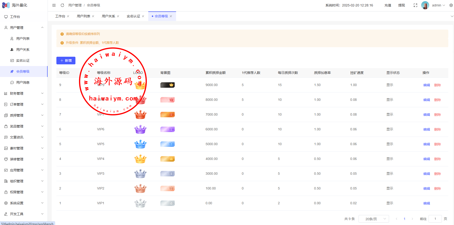 17、代理功能,后台开启用户为代理,即可登录代理端查看代理下级用户情况