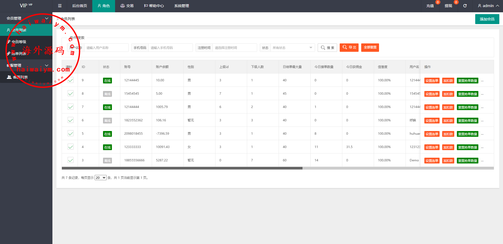 海外商城抢单刷单系统/预设订单/重置订单/签到