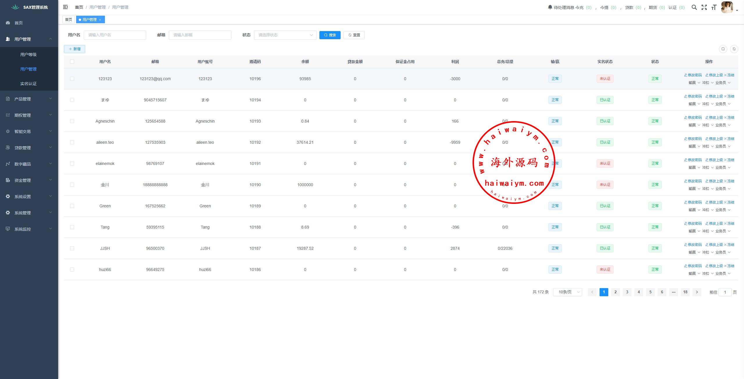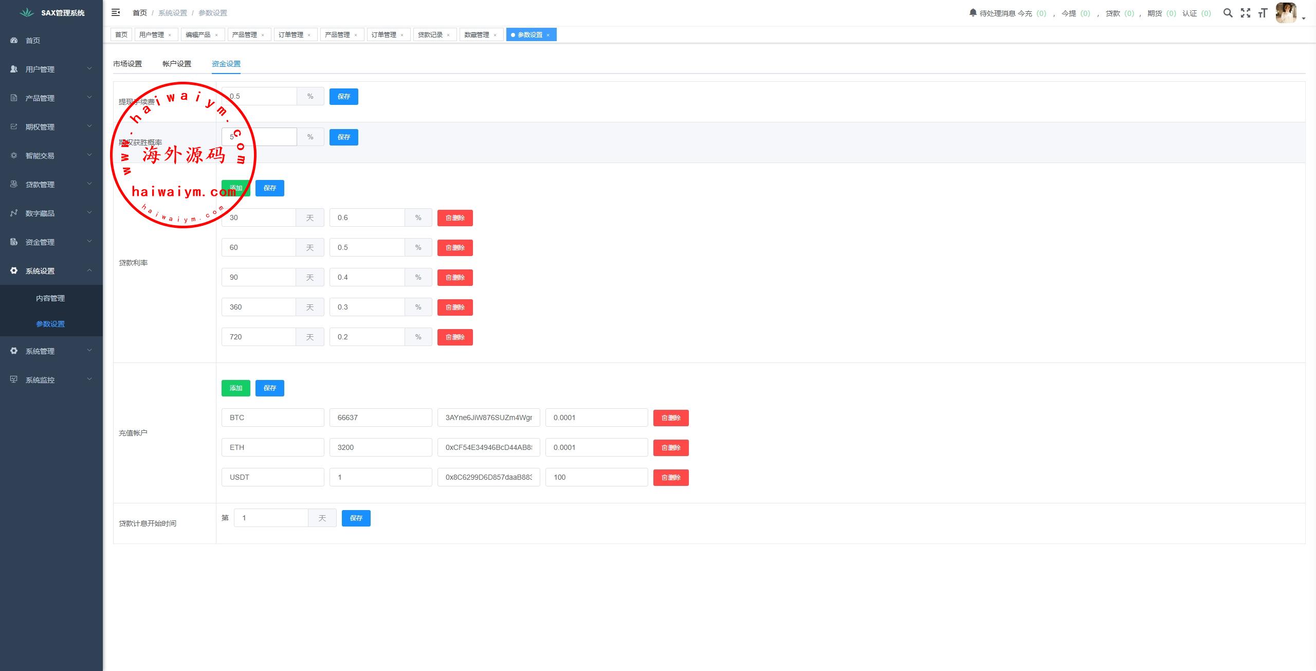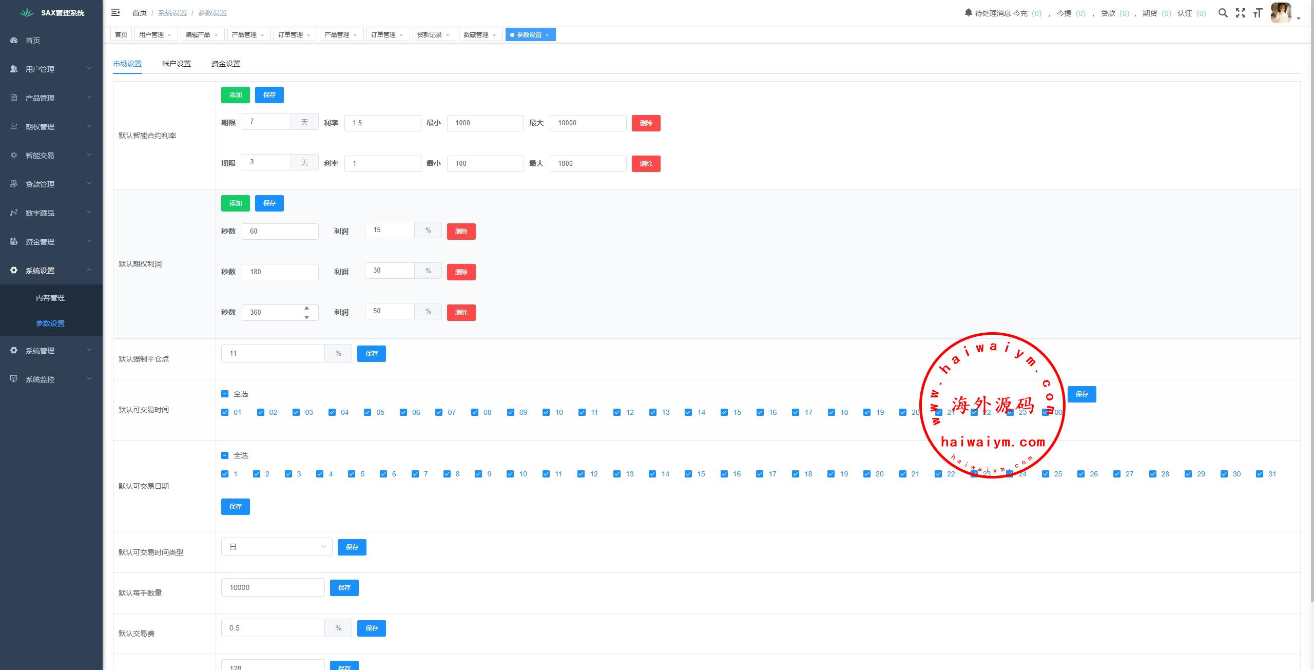 海外交易所系统/合约/期权/质押/秒合约/插针控制/申购