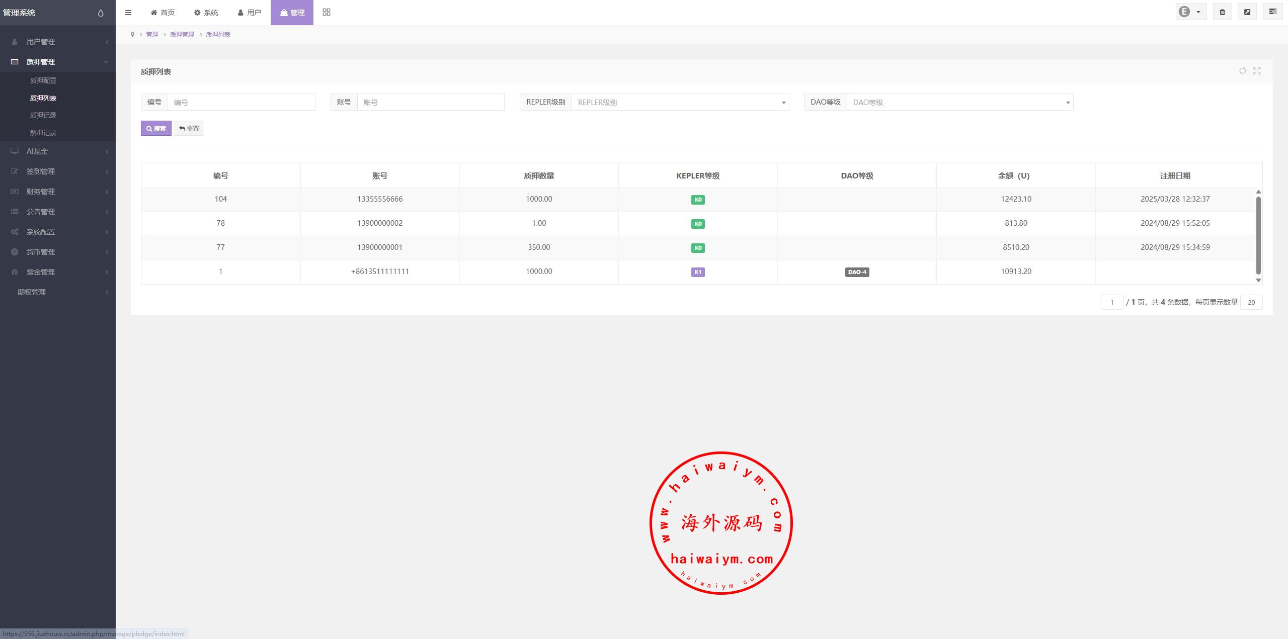 综合性数字资产管理平台,整合了质押、AI基金投资、加密货币交易、邀请奖励和社区投票等多种功能