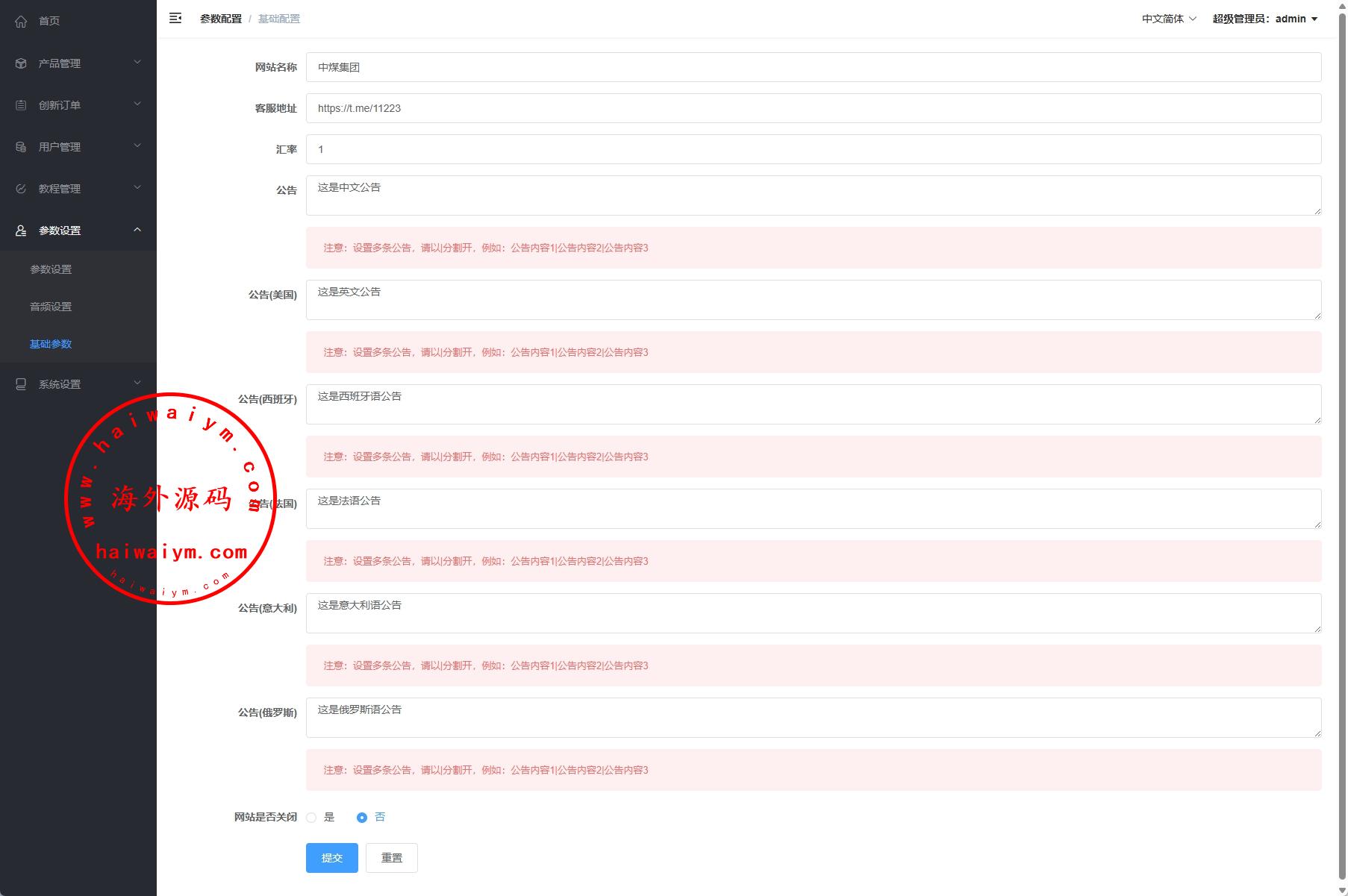 前端多语言,支持实名认证交易限制,支持用户订单单控产品可以替换其他产品