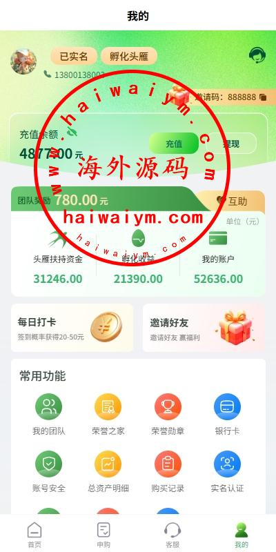 新UI投资认购系统,前端uniapp开发后端php全开源支持签到,内部转账,三级分销,排名等功能