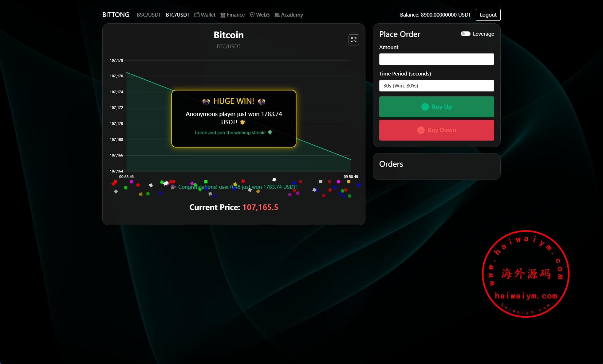 多语言虚拟币交易系统/秒合约交易/伪交易所/时间盘