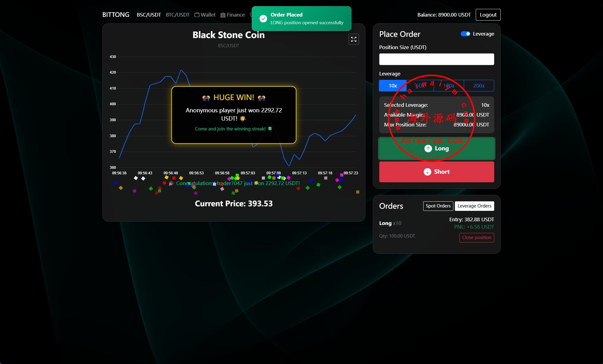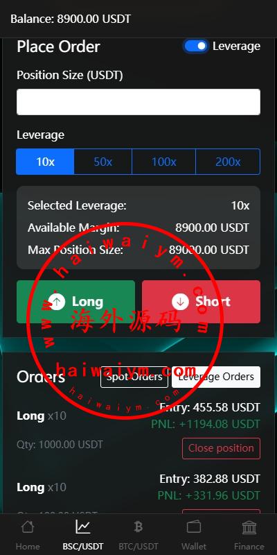 系统只有BSC跟BTC交易,支持秒合约跟杠杆交易