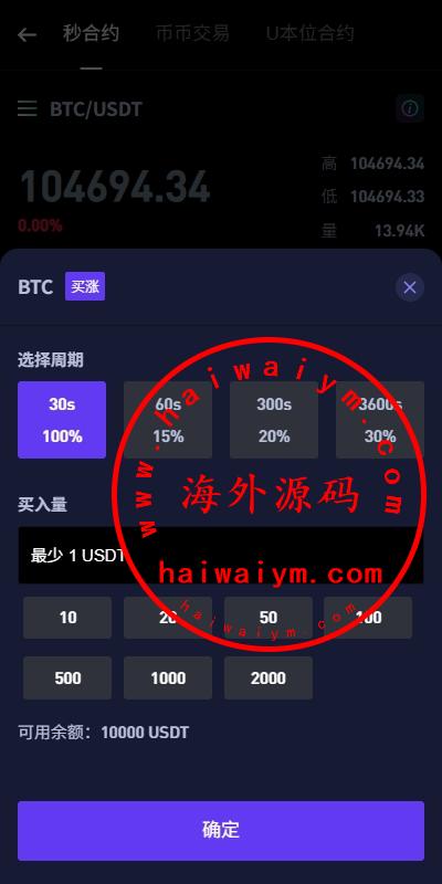 多语言虚拟币交易系统/秒合约交易/伪交易所/时间盘