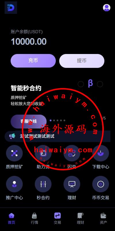 系统功能:币币、U本位合约、秒合约、质押挖矿、助力贷、理财、推广三级分销等