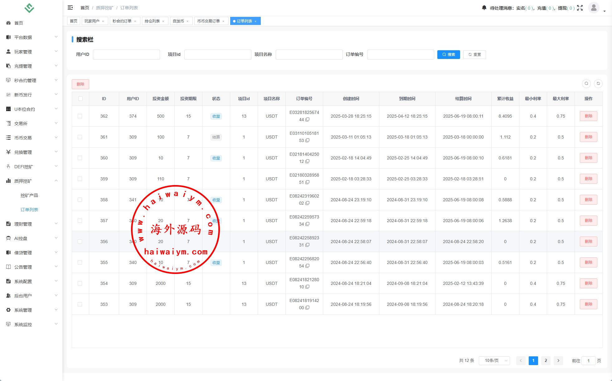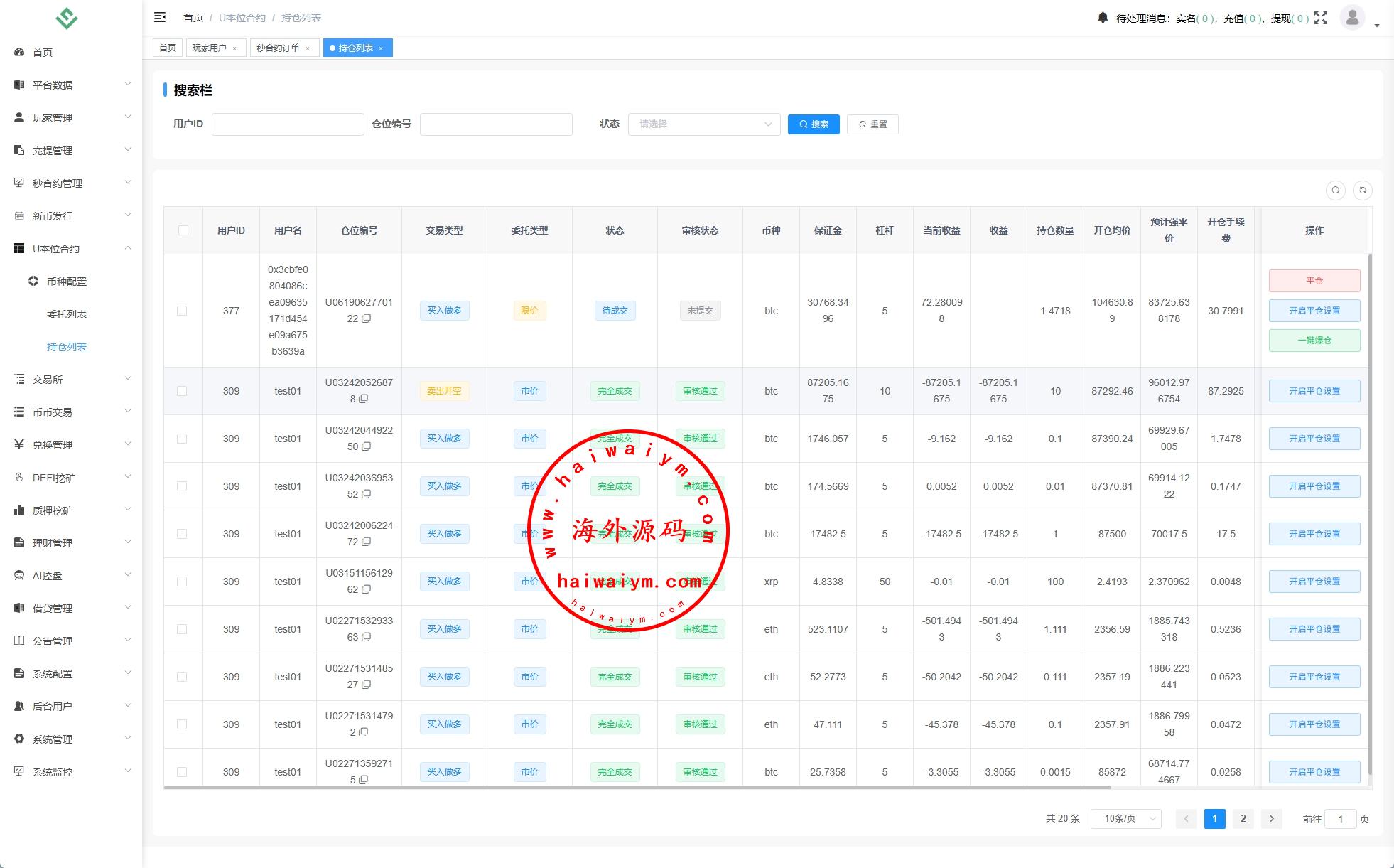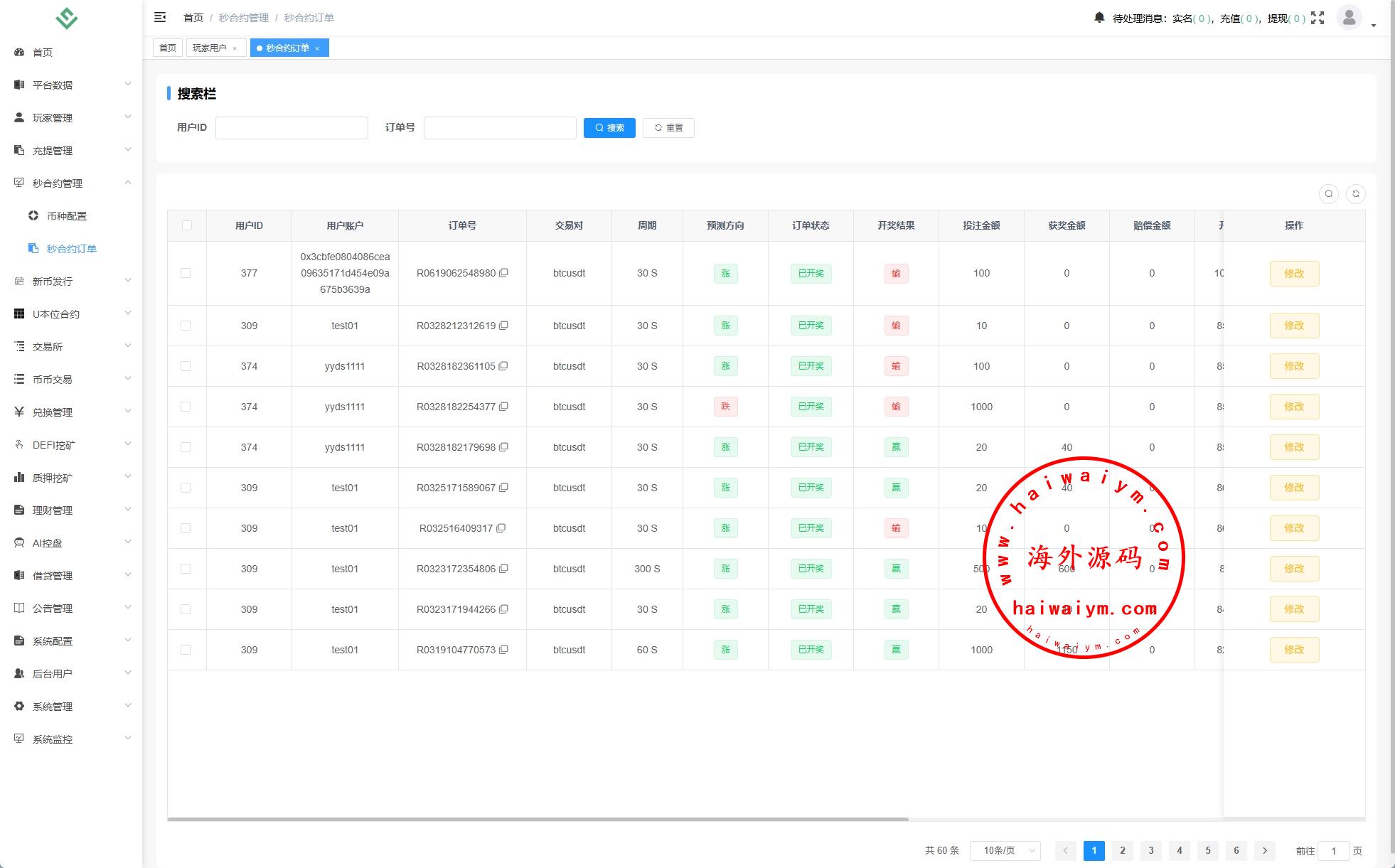 海外交易所系统/合约/期权/质押/秒合约/插针控制/申购