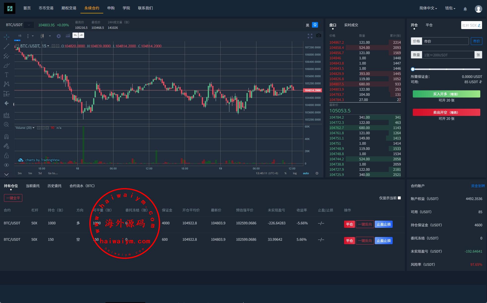 海外交易所系统/永续合约交割合约/K线控制/质押理财