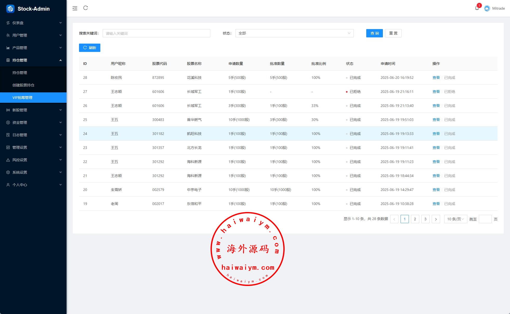 前端VUE,后台VUE,API端JAVA开发带源码 系统功能齐全,二开:涨停买入1000,后台手动通过100-900等