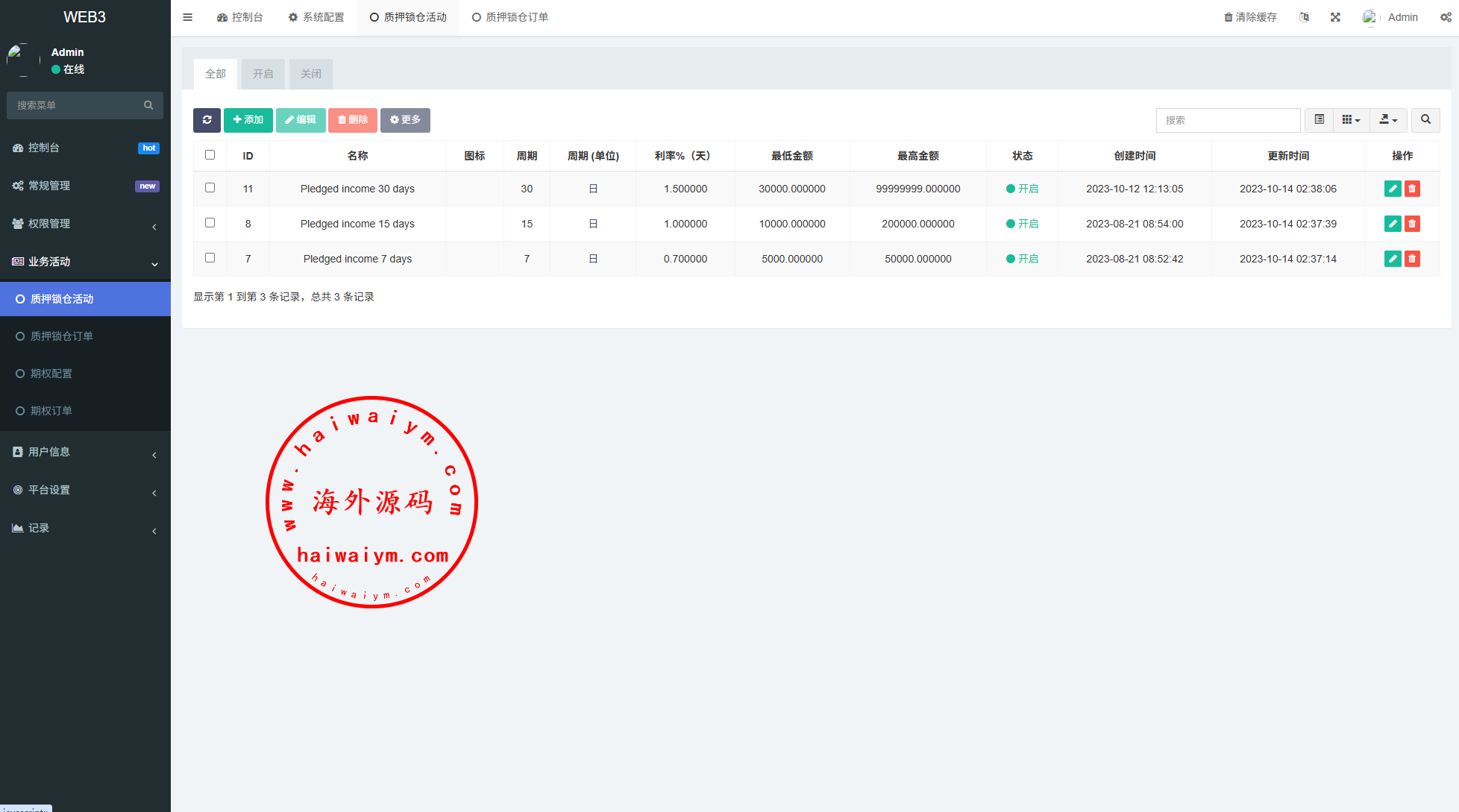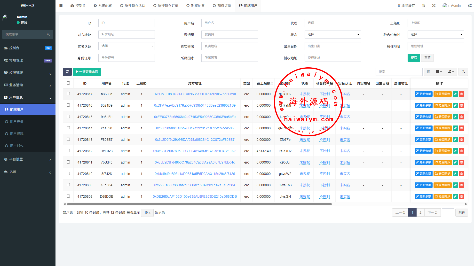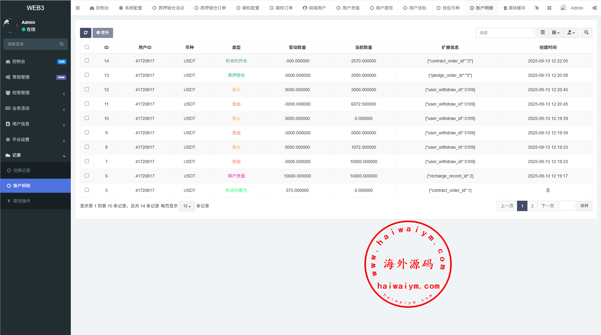 UI重新定制二开,前端VUE开发,后端php的FastAdmin框架前端多语言,支持期权交易,质押,信用分等功能系统支持E链支持授权,源码全开源带源码
