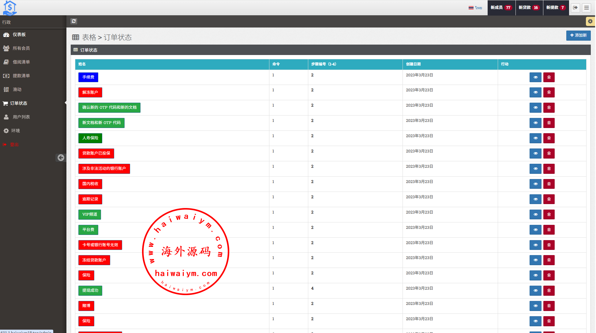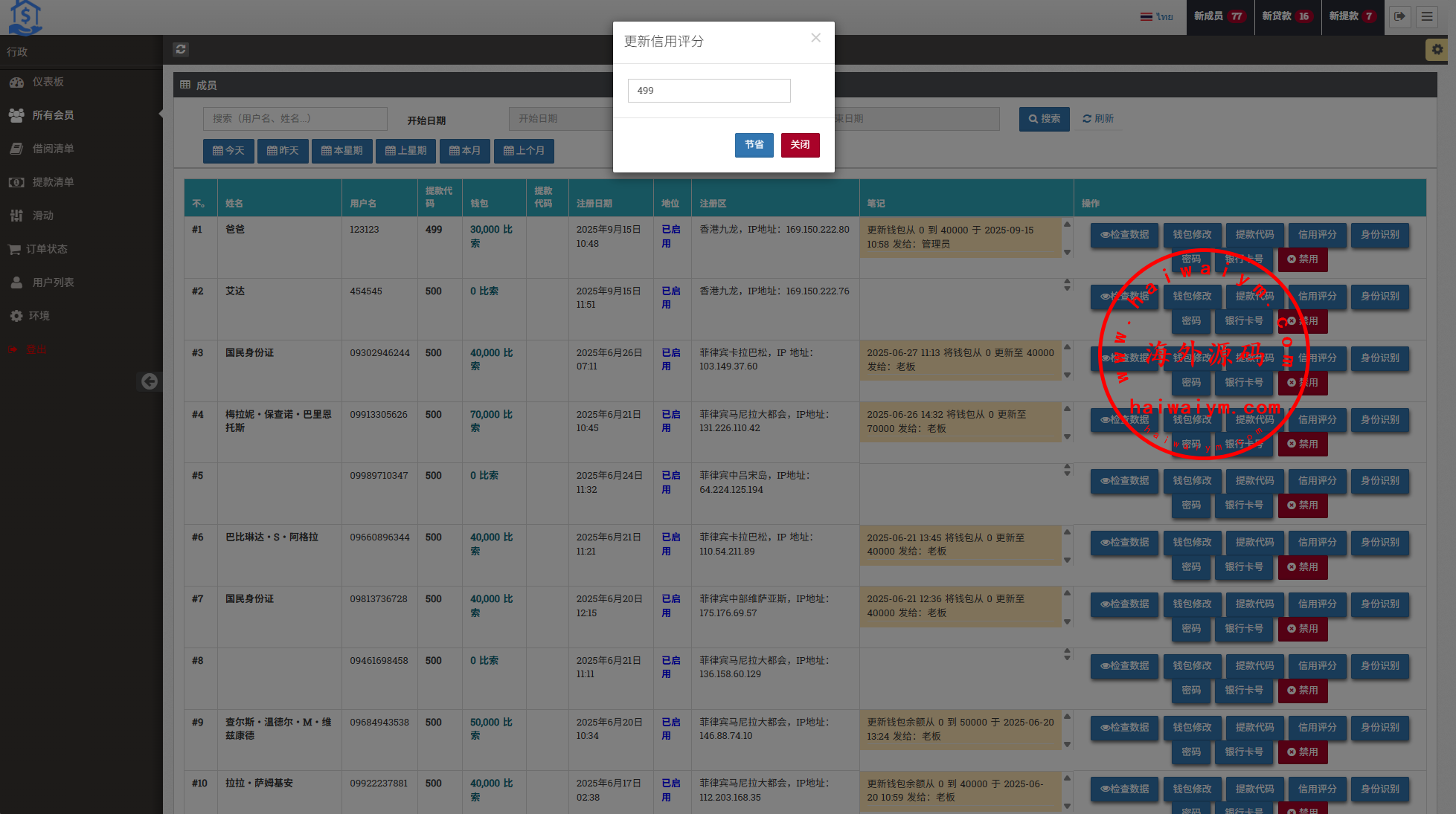 海外贷款平台/小额贷款系统/信用分/合同/提现码