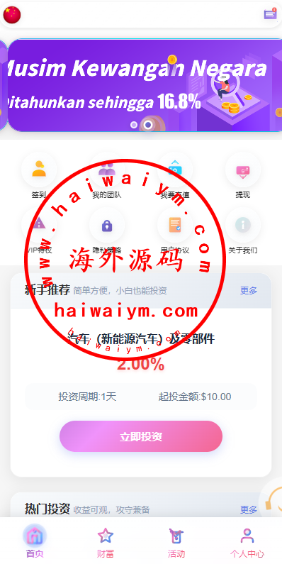新UI投资理财系统/一路一带投资/签到/邀请返利