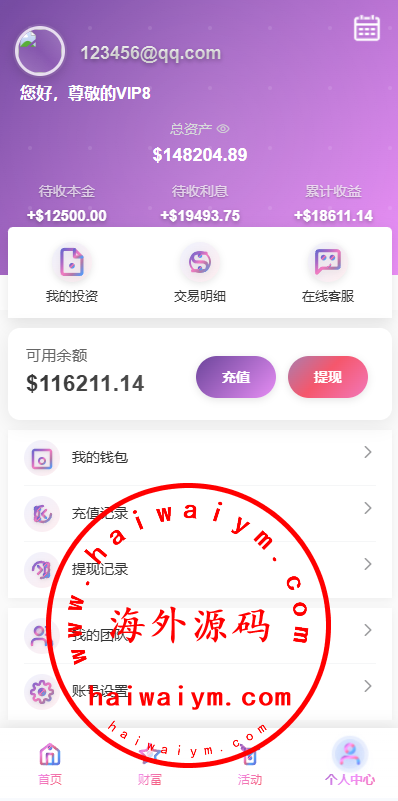 新版投资理财系统/借贷/爱心公益/签到/三级分销