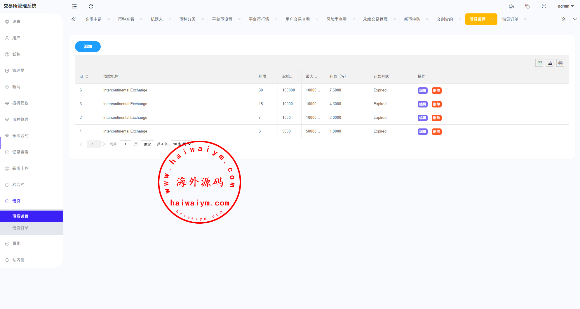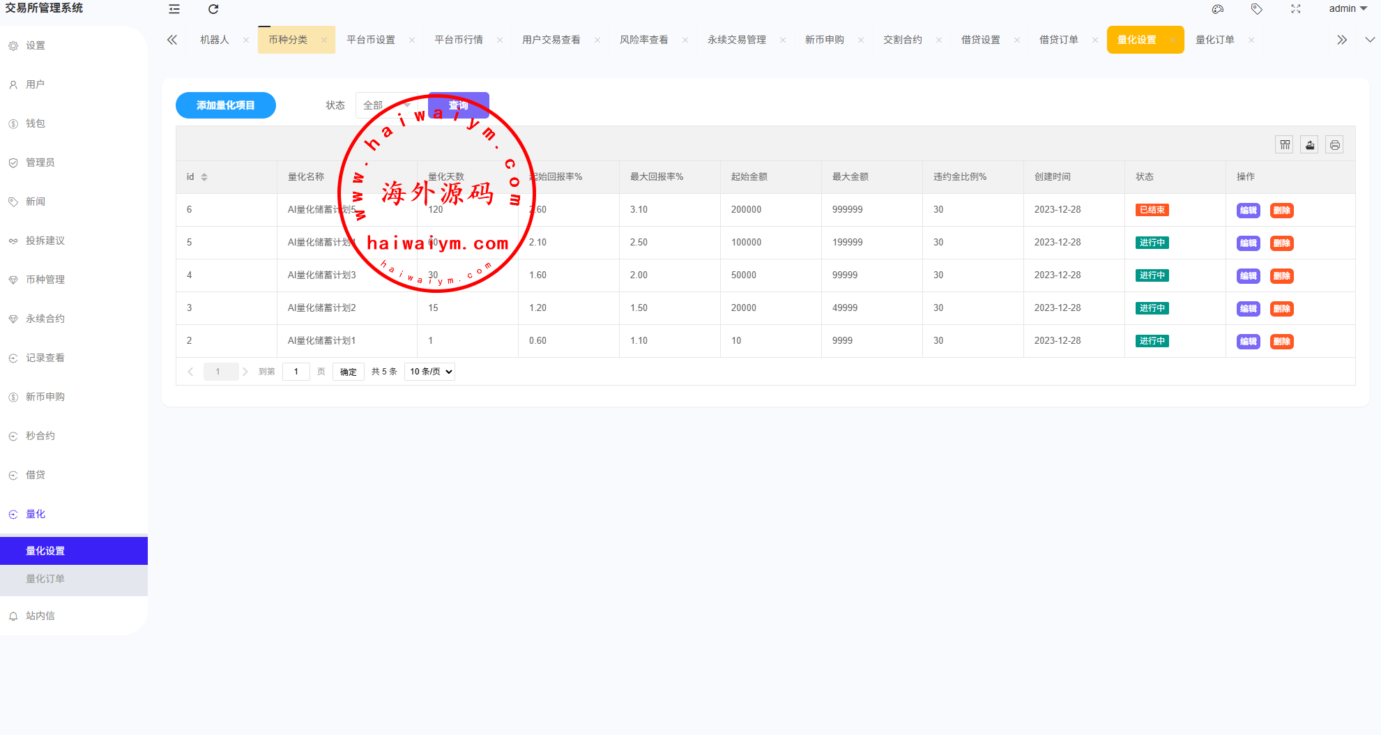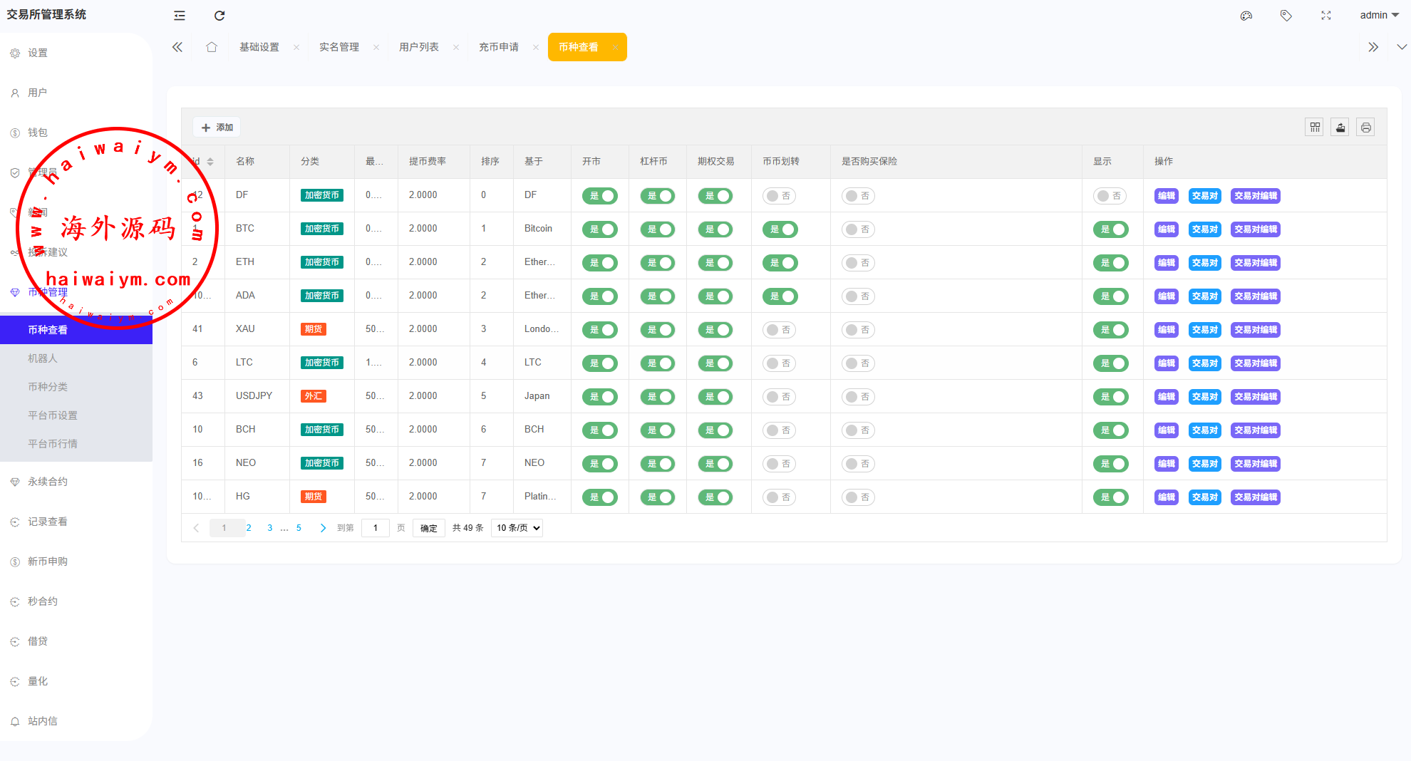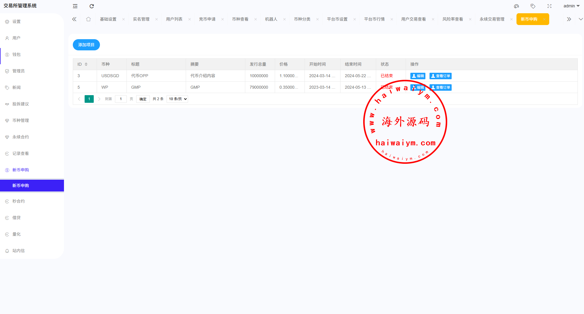 海外交易所系统/合约/期权/质押/秒合约/插针控制/申购