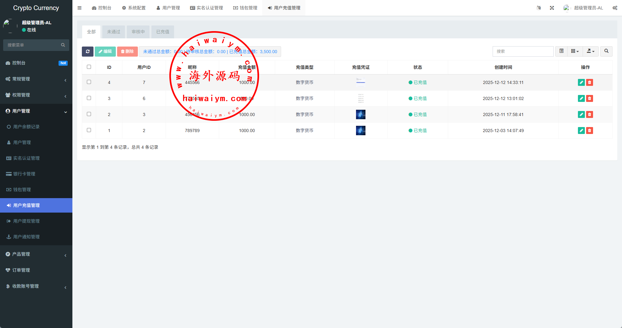 系统功能:信用分,VIP等级,实名认证,银行卡usdt充值提现,用户单控,订单控制等功能