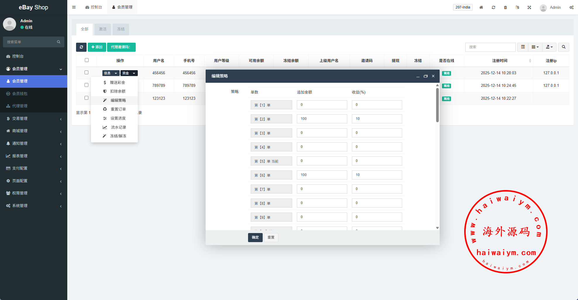 运营版抢单刷单系统/打针/做单/会员跟踪/信誉分