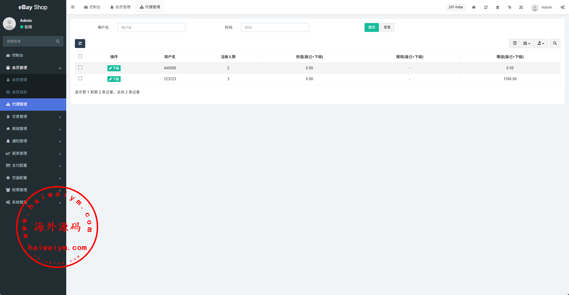 支持权限代理后台