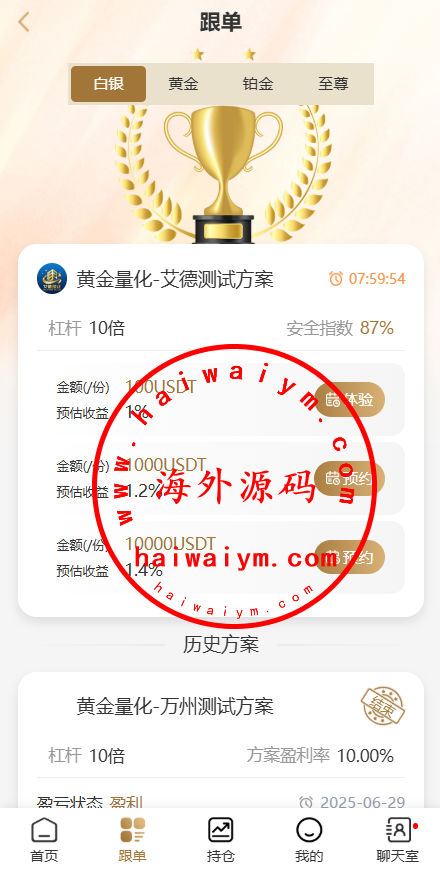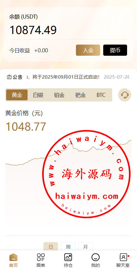 黄金投资跟单系统/投资理财/推广分销/聊天室