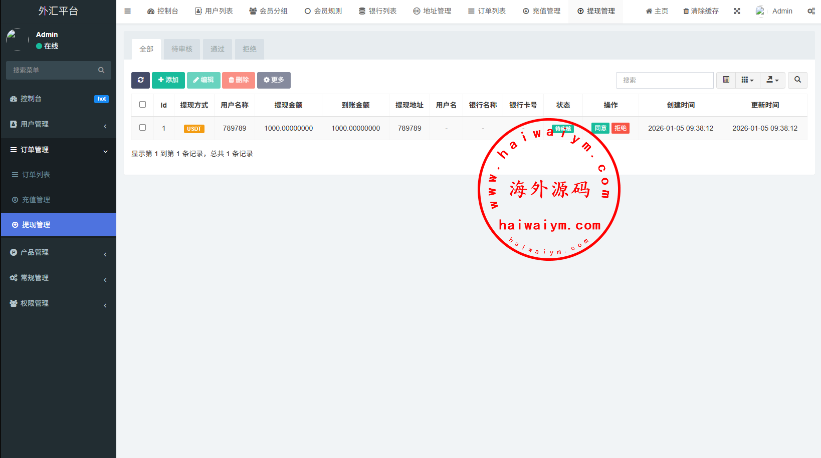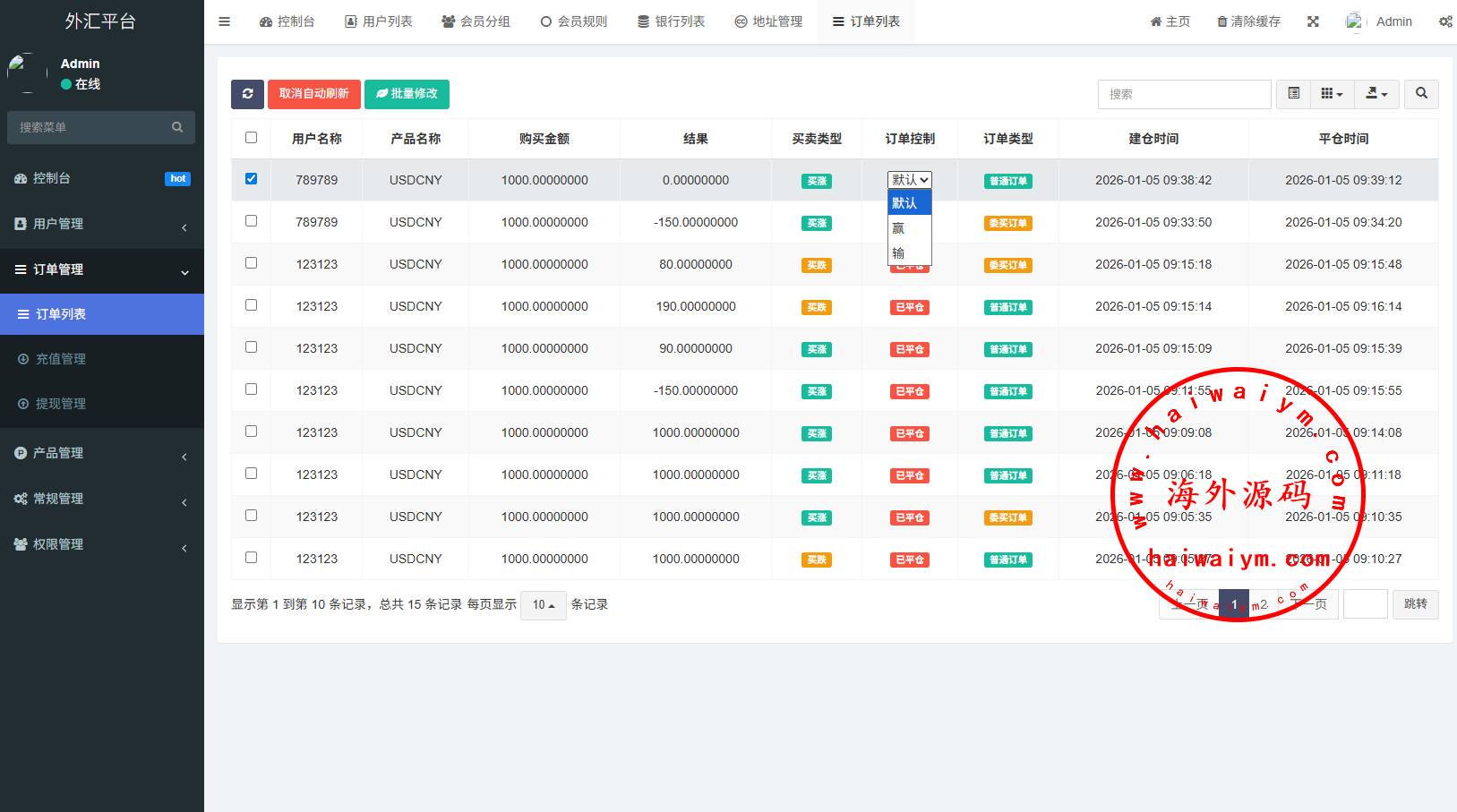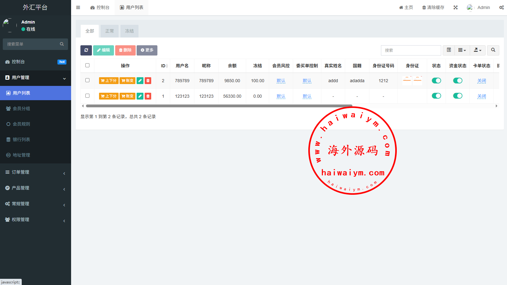 系统支持订单委买,单控群控,实名认证,提现限制等功能