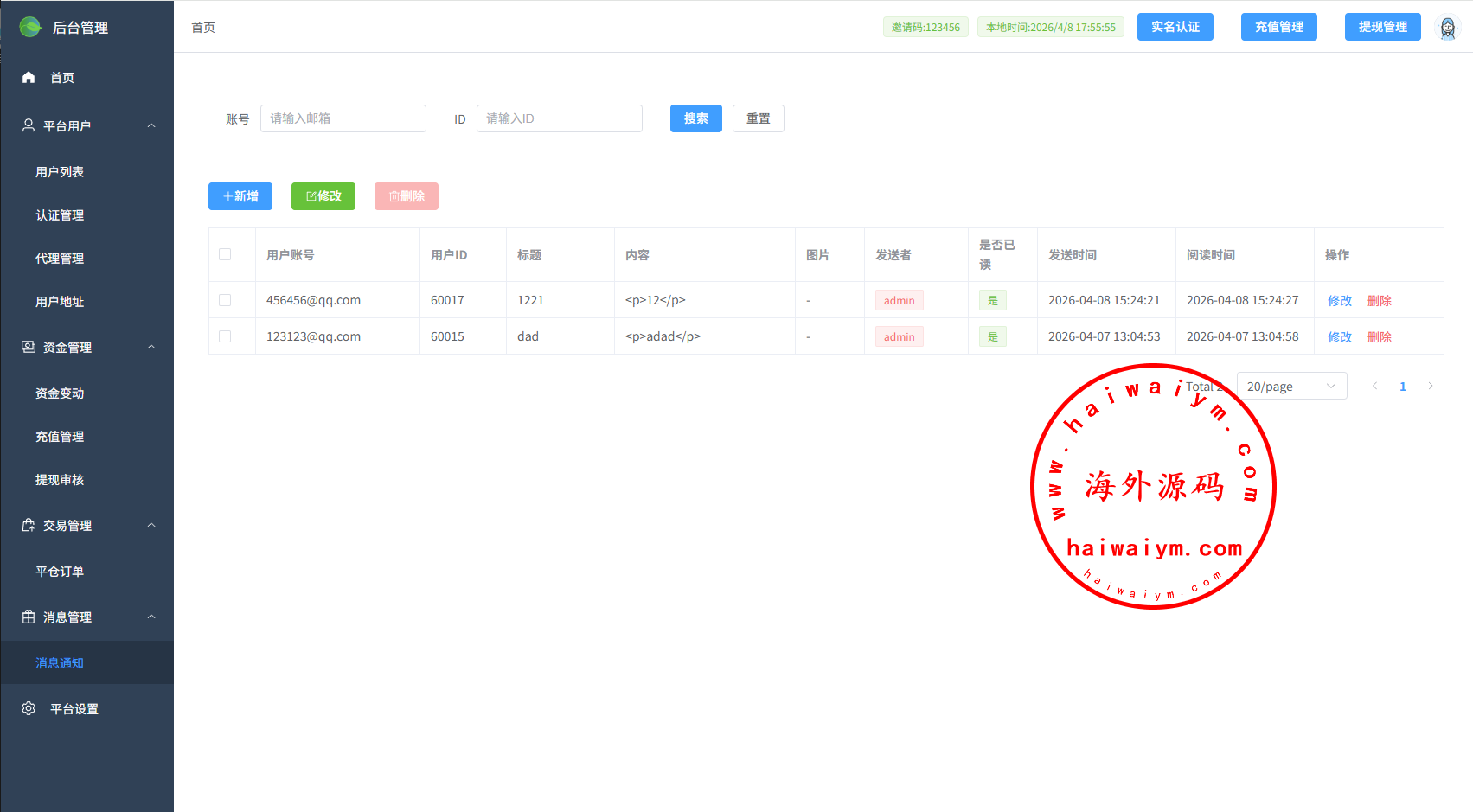 新版JAVA微盘系统,前端多语言,前后台VUE开发开源带源码前端产品支持虚拟币,贵金属,外汇,行情使用免费接口支持信用分,实名认证,消息发送,用户控制等功能