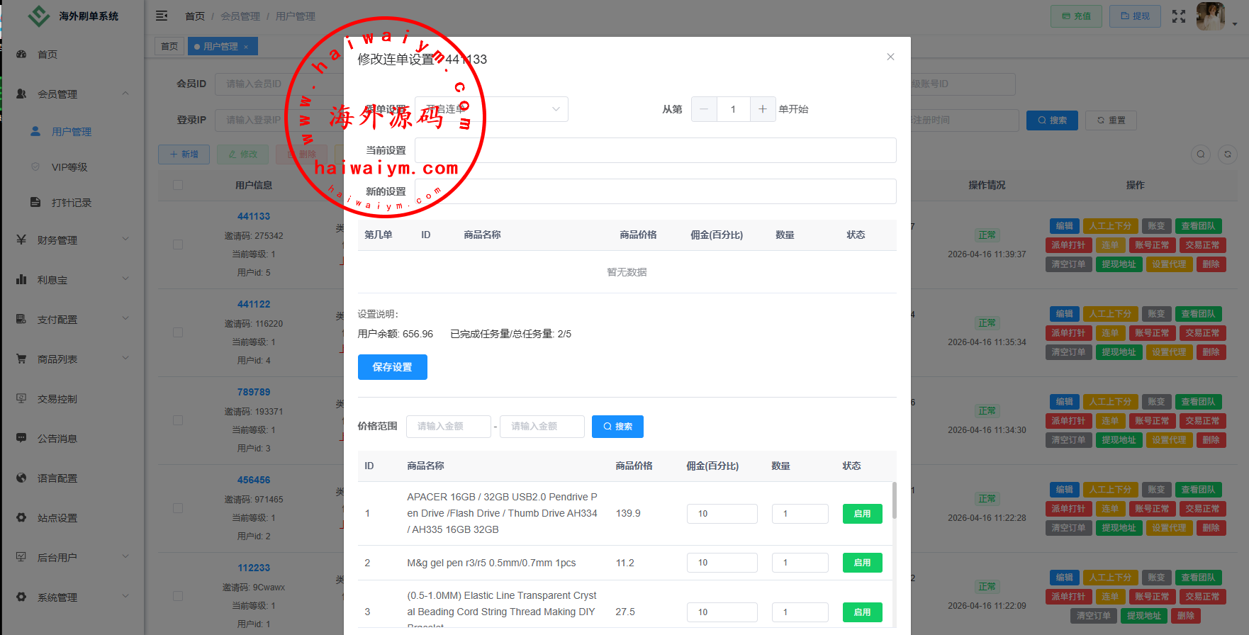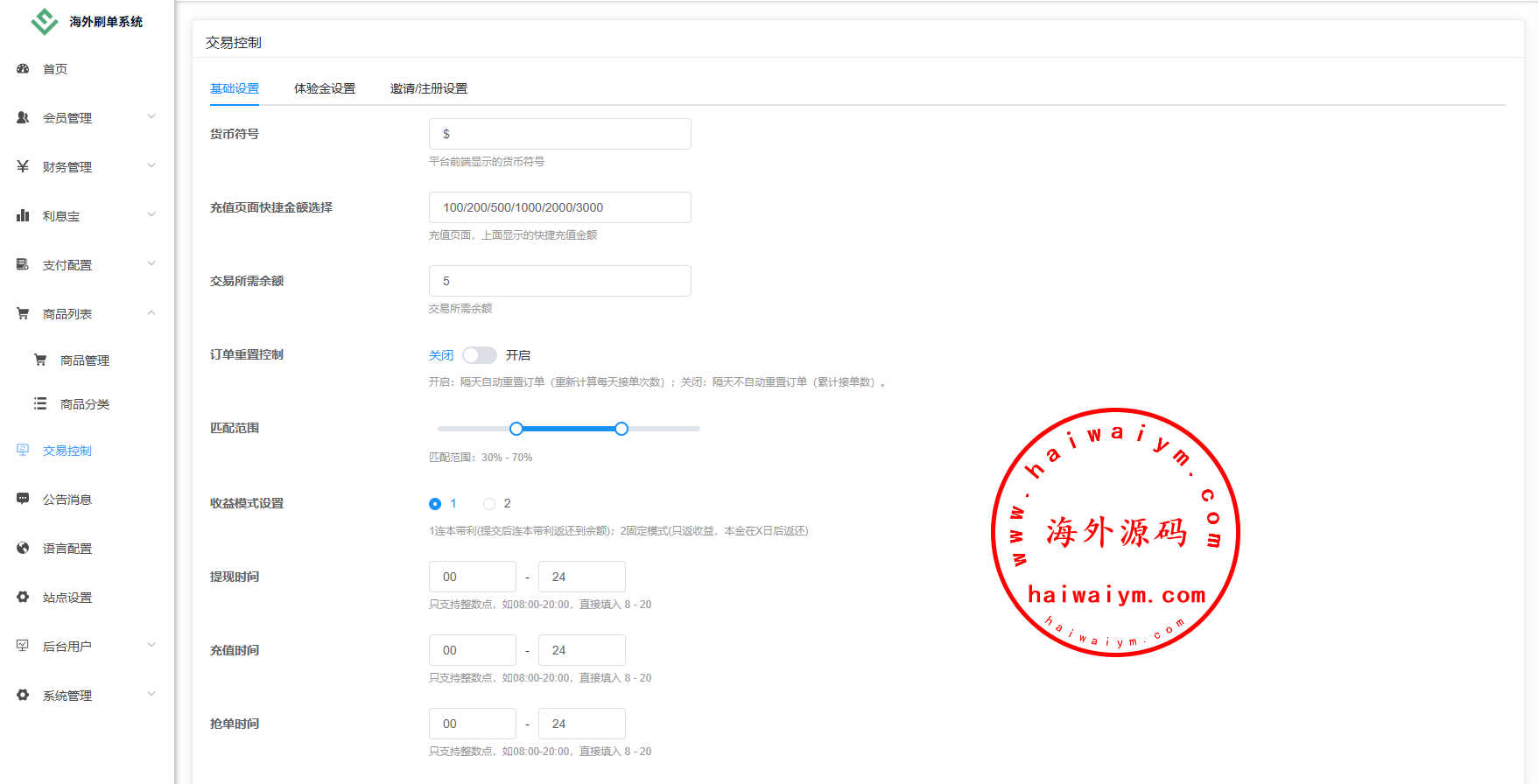 功能:金额打针,连单,信用分,重置订单,时区设置,余额宝,代理等诸多功能此套系统全开源功能可定制二开,源码不便宜嘴炮勿扰