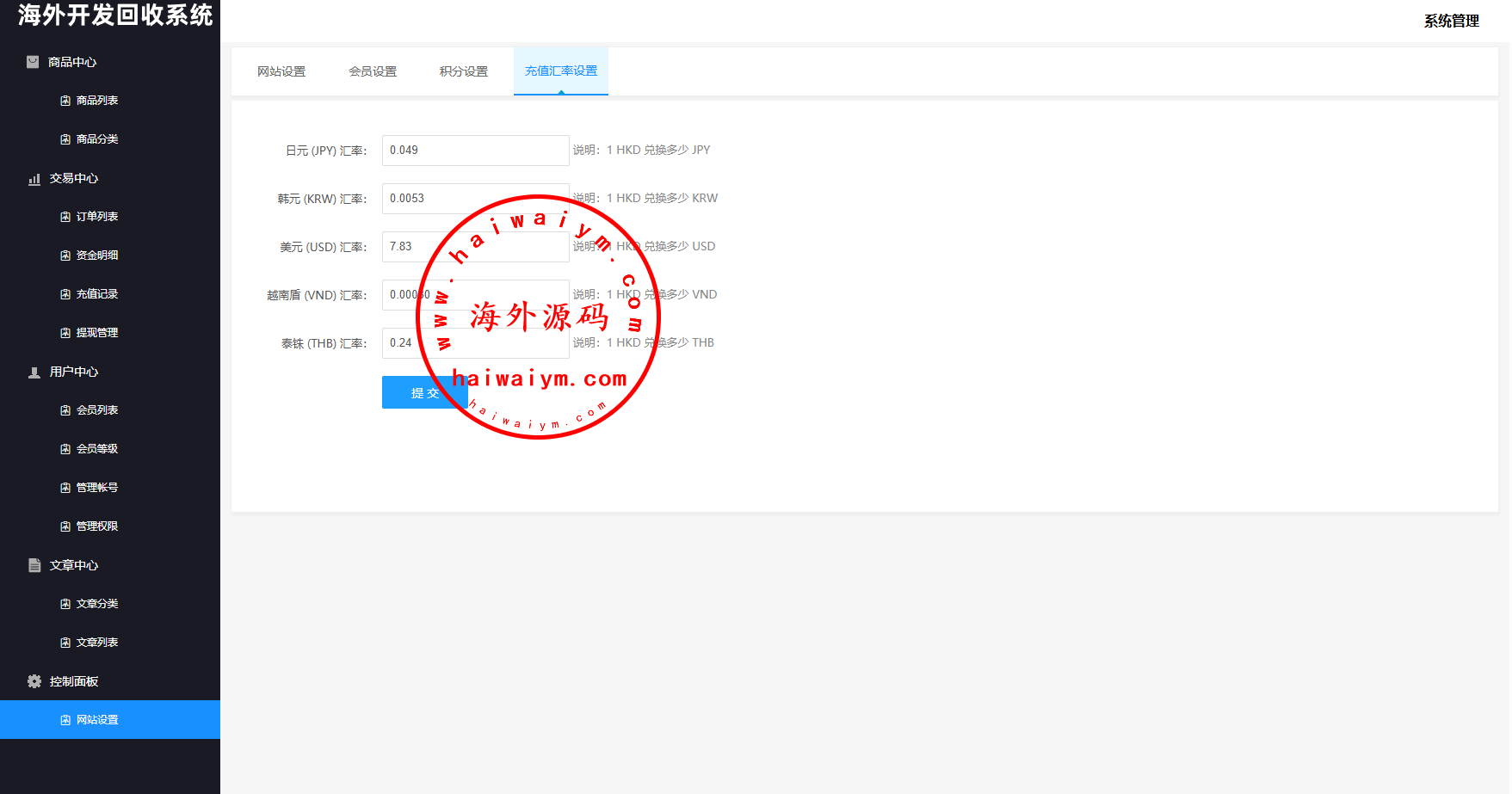 海外回收商城/多语言旧金属资源回收/充值汇率