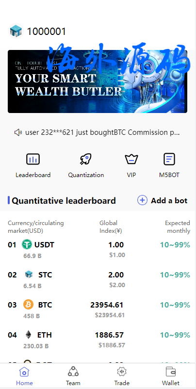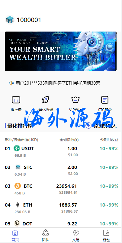 新UI海外量化机器人/多语言虚拟币投资系统/前端vue