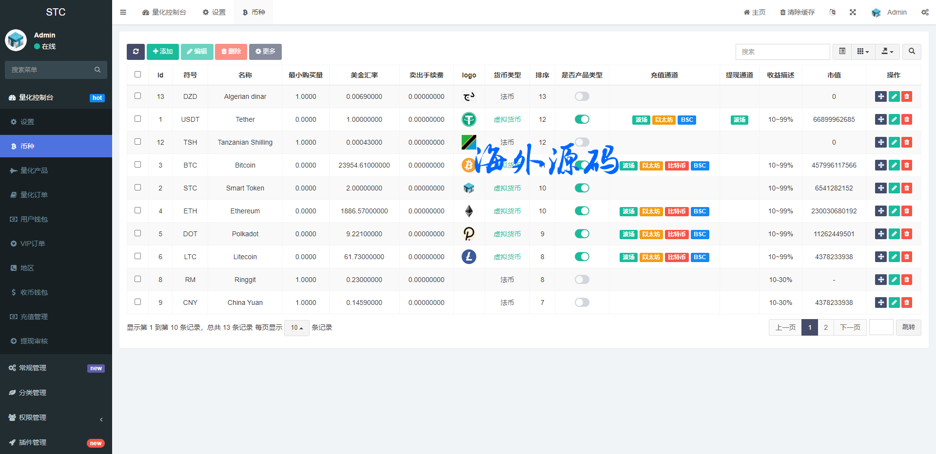 海外虚拟币量化交易系统/多语言量化/USDT自动充值