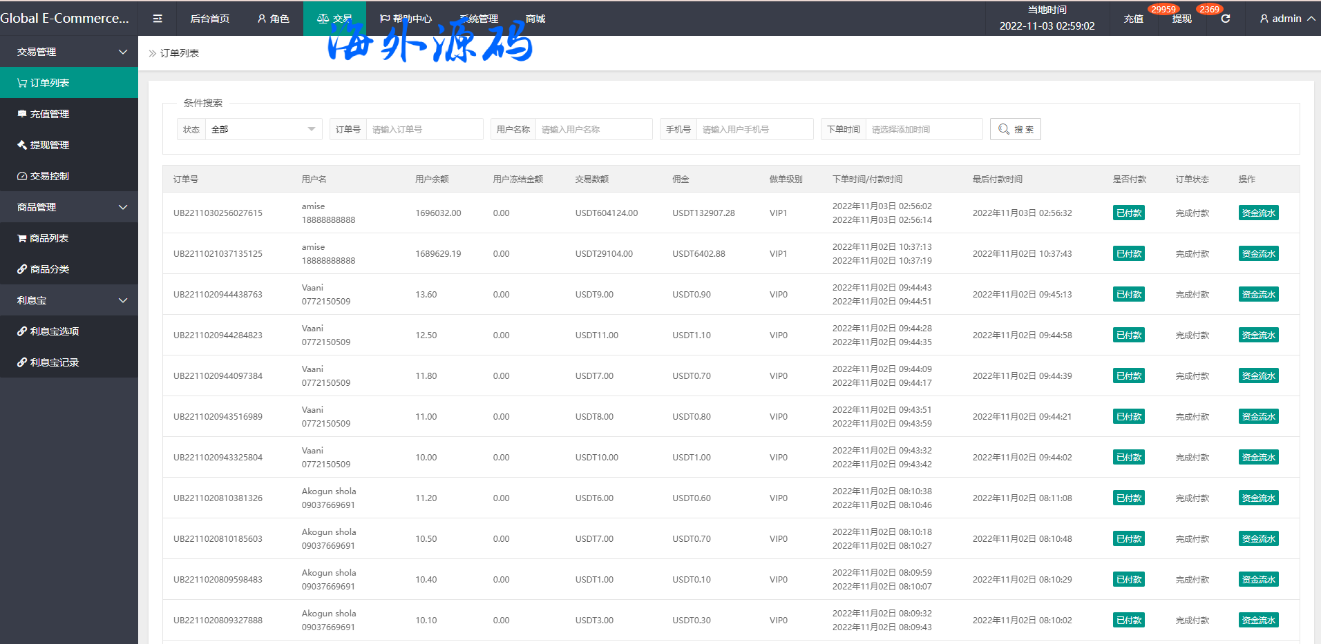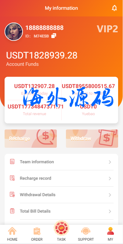 5.三级分销,带客服,等级优先,充值提现优先完美后台查询功能
