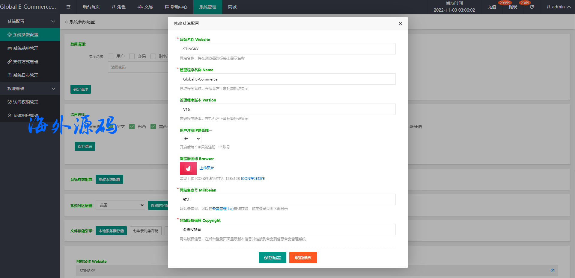 IP注册限制、系统时区配置、站内消息公告群发等组多功能