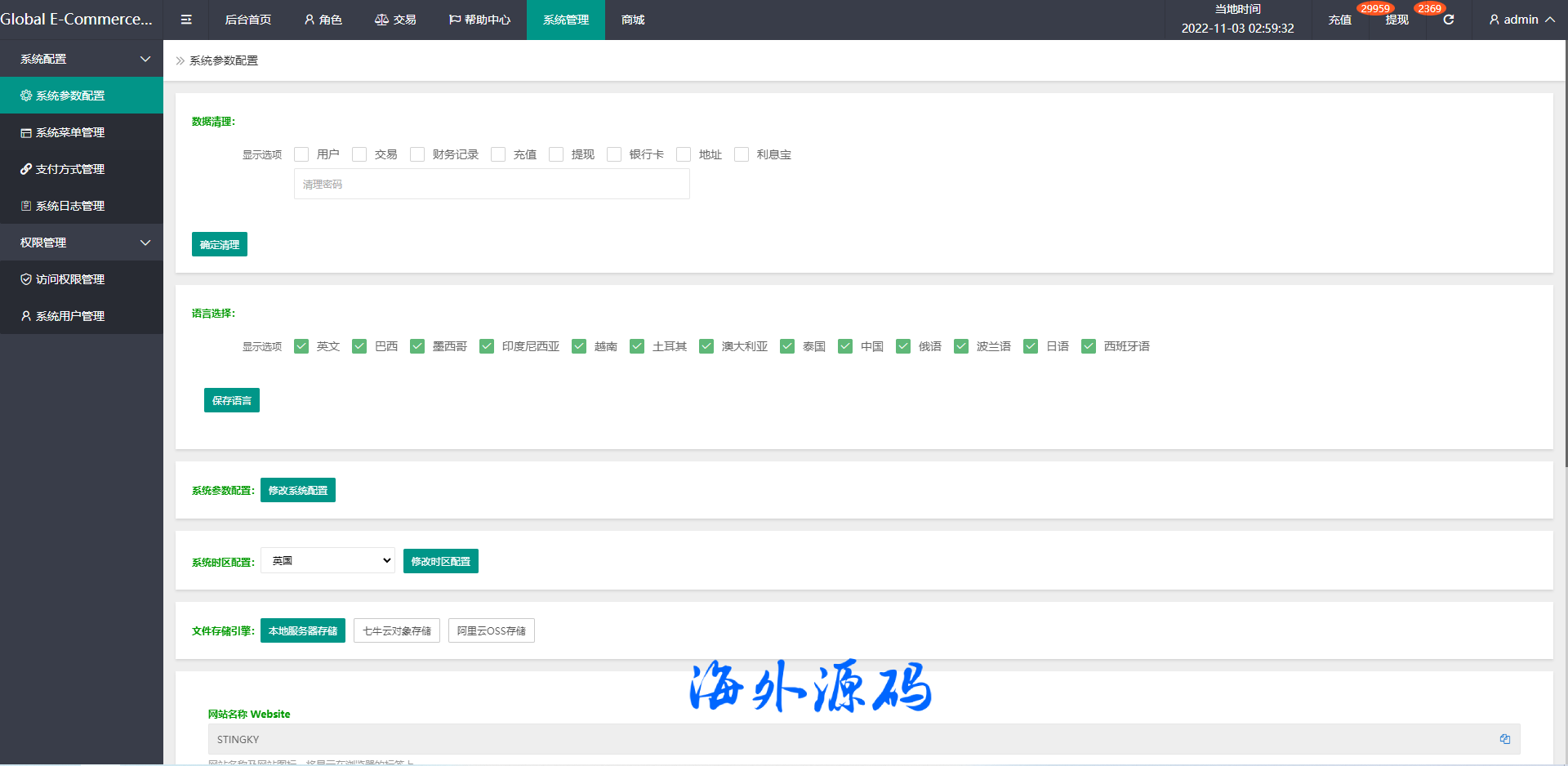 全新定制UI,前端多语言后台可控制,可设置默认语言和默认时区
